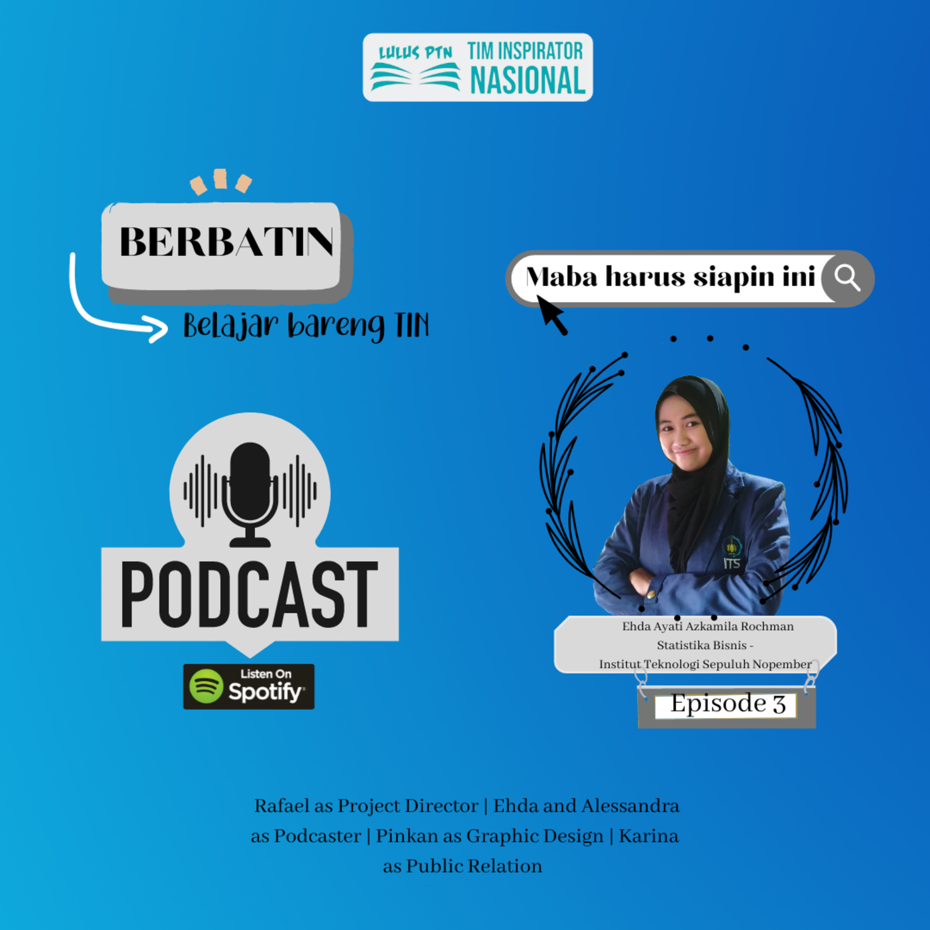 Kali ini topik pembahasan BERBATIN yang menarik adalah Maba Harus Siapin Ini. kira kira siapin apa ya?🤔 Podcast kali ini kita akan di temani kembali oleh Kak Ehda guys.