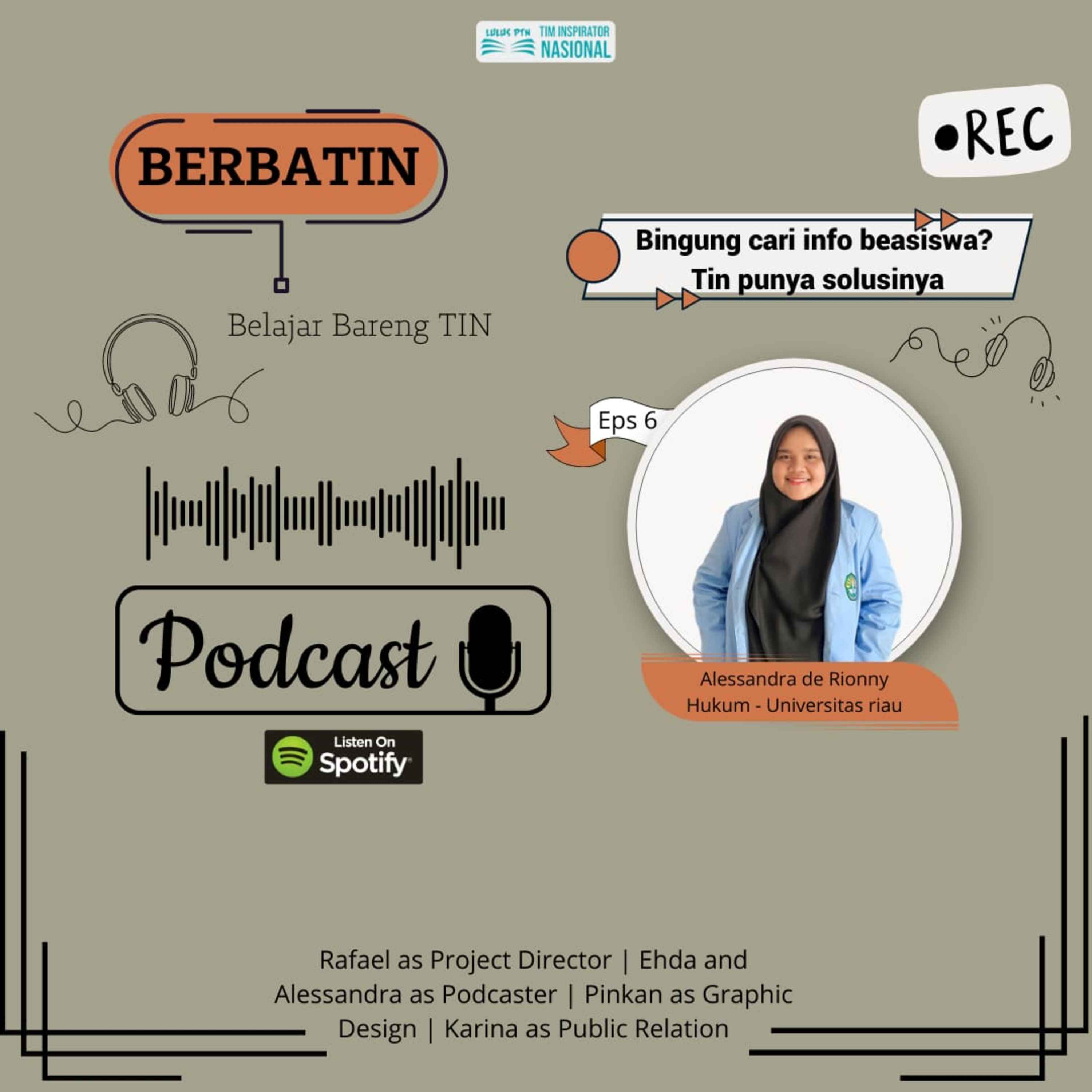 Topik pembahasan BERBATIN kali ini sangat menarik loh. Podcast hari ini kita akan membahas tentang "Bingung Cari Info Buat Beasiswa? TIN Punya Solusinya" yang akan ditemani oleh Kak Sandra guys.