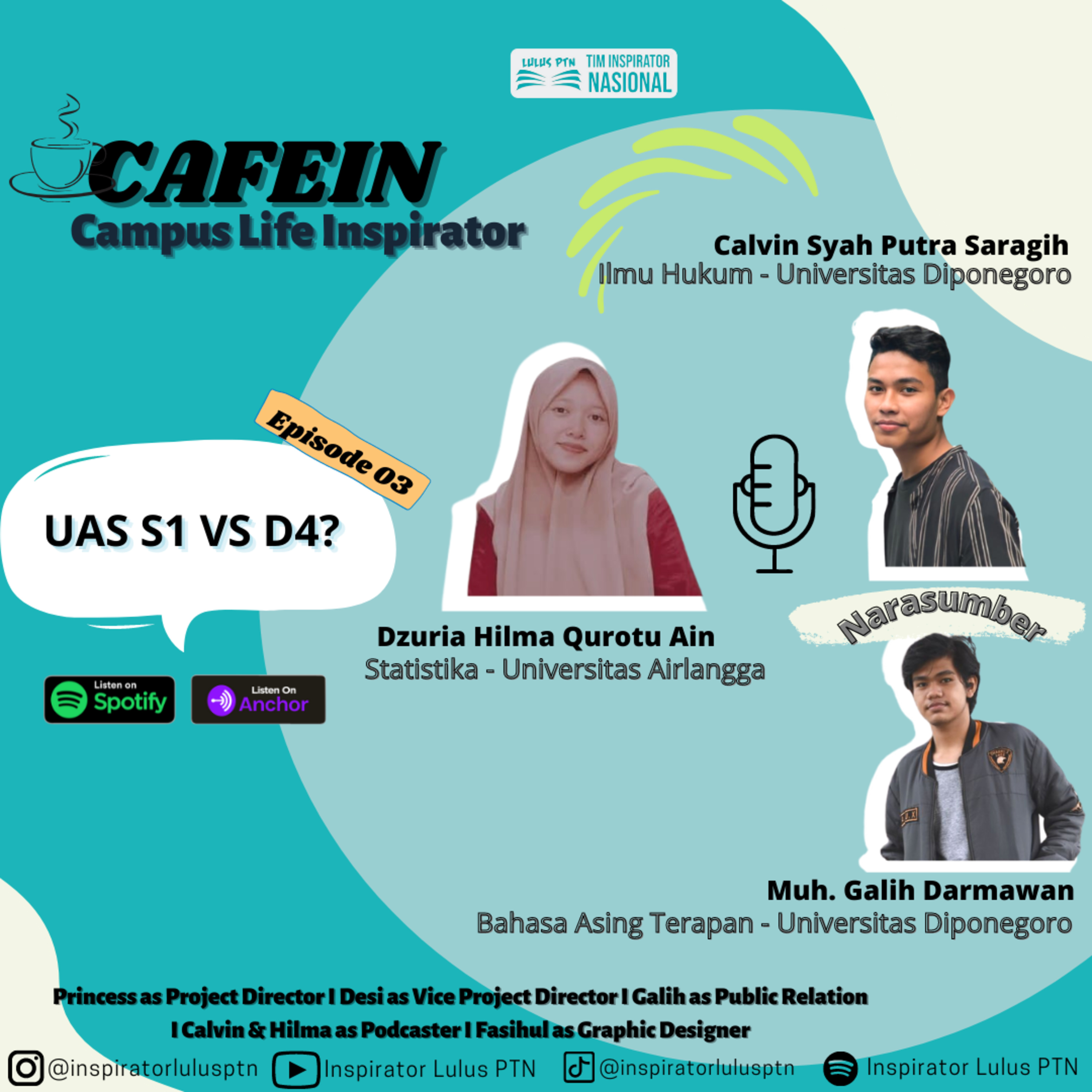 Di podcast kali ini ada Kak Hilma, Kak Calvin, dan Kak Galih yang akan menemani sambil sharing ke kamu dan membahas lebih dalam tentang sistem UAS S1 dan D4 loh! Jadi jangan sampai ketinggalan buat dengerin sampai akhir agar kamu mendapatkan banyak pengetahuan tentang sistem UAS nya dan juga sudah tidak kaget lagi nanti saat memasuki dunia perkuliahanmu mengikuti UAS.