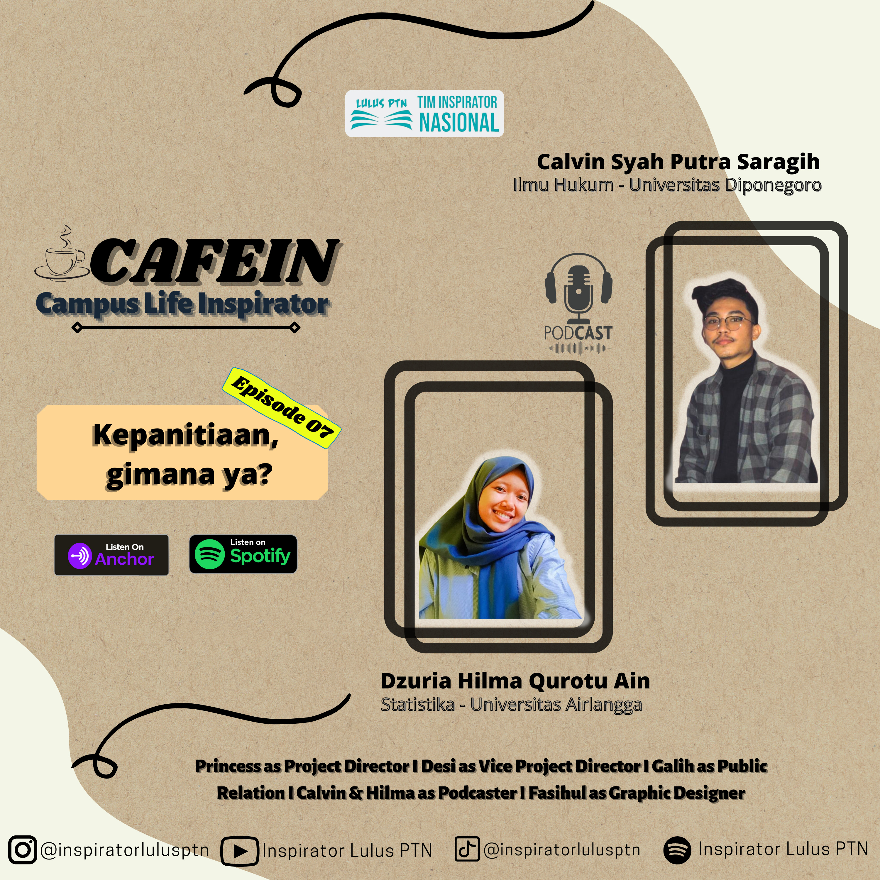 Di podcast kali ini ada Kak Calvin dan Kak Hilma yang akan menemani sambil sharing ke kamu membahas dunia kepanitiaan di kampus merdeka nih dan gimana sih mekanisme ikut ke dalam kepanitiaan serta cara membagi waktu antara kepanitiaan dan akademik, jadi jangan sampai ketinggalan buat dengerin sampai akhir agar kamu lebih banyak tahu tentang kepanitiaan yang ada di kampus.