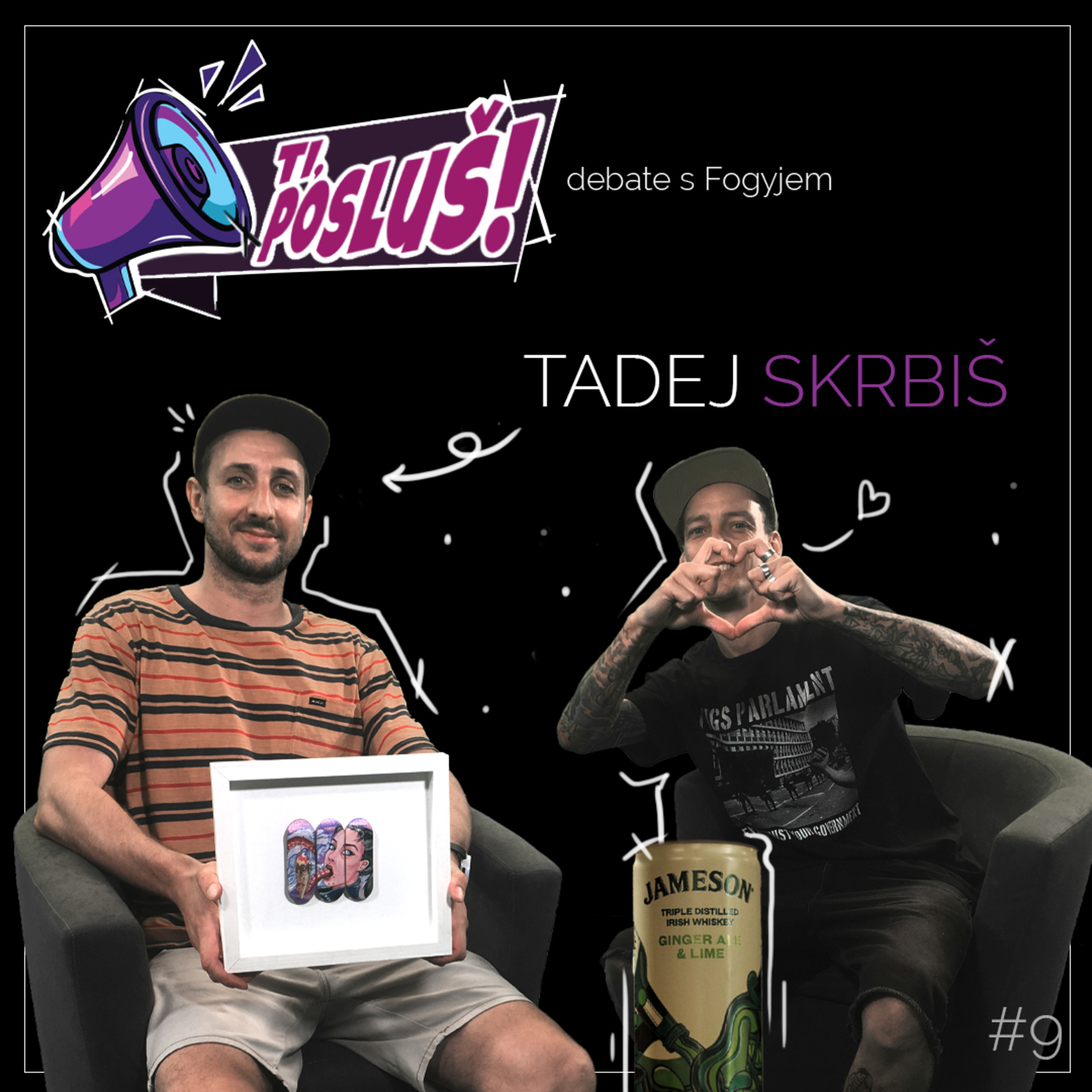 Gost devete oddaje podcasta TI, POSLUŠ! je bil Tadej Skrbiš (@tadejskrbis). Debate so tekle o stilu, rolerblejdingu, prvem dropu, o menjavi klobuka za prvi skejt, negativni energiji, ki je vodila k napredovanju, o odporništvu in incidentu z rokometaši, deformaciji hallux valgus, fingerskejtih, skate ideji, jetiju, videu Zmer Isto in še marsičem drugem. Čekidaut!