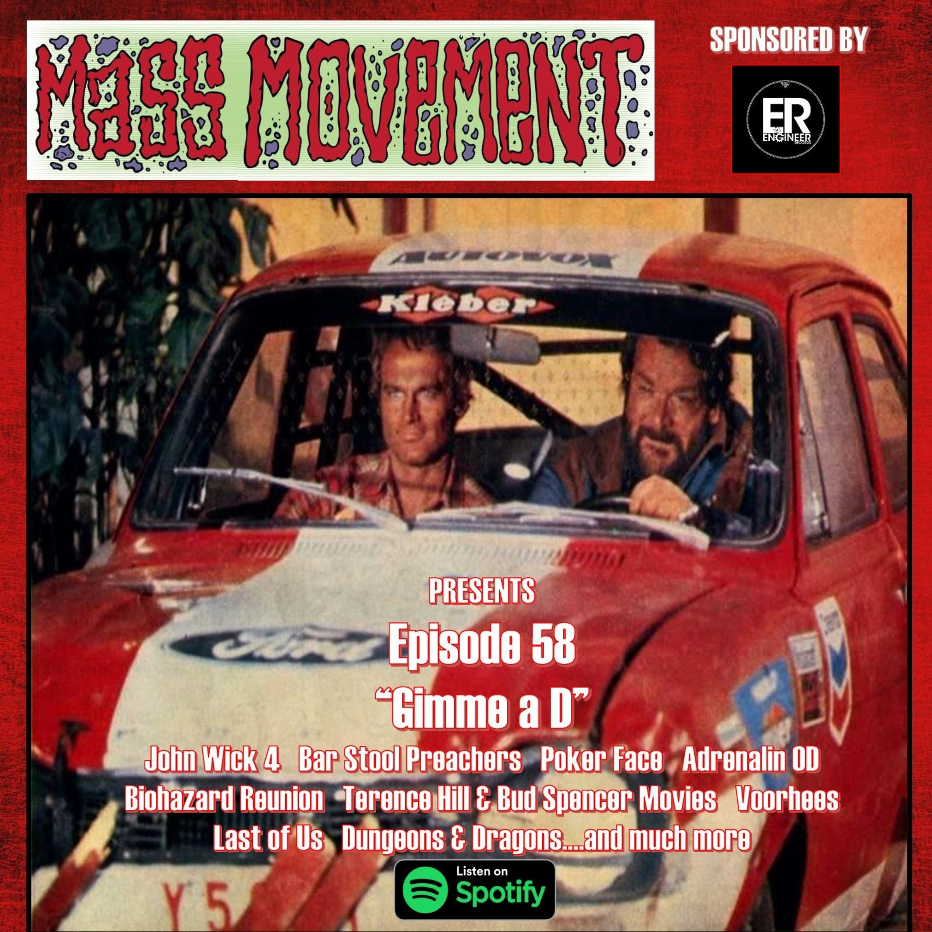 Mass Movement Presents... Episode 58: Gimme a D... In which the middle-aged crew yammer on about John Wick 4, the new Bar Stool Preachers record, Terrence Hill and Bud Spencer, the upcoming Dungeons & Dragons movie, The Last of Us, Poker Face, the Biohazard reunion and take a deep dive into their collective history with Voorhees.