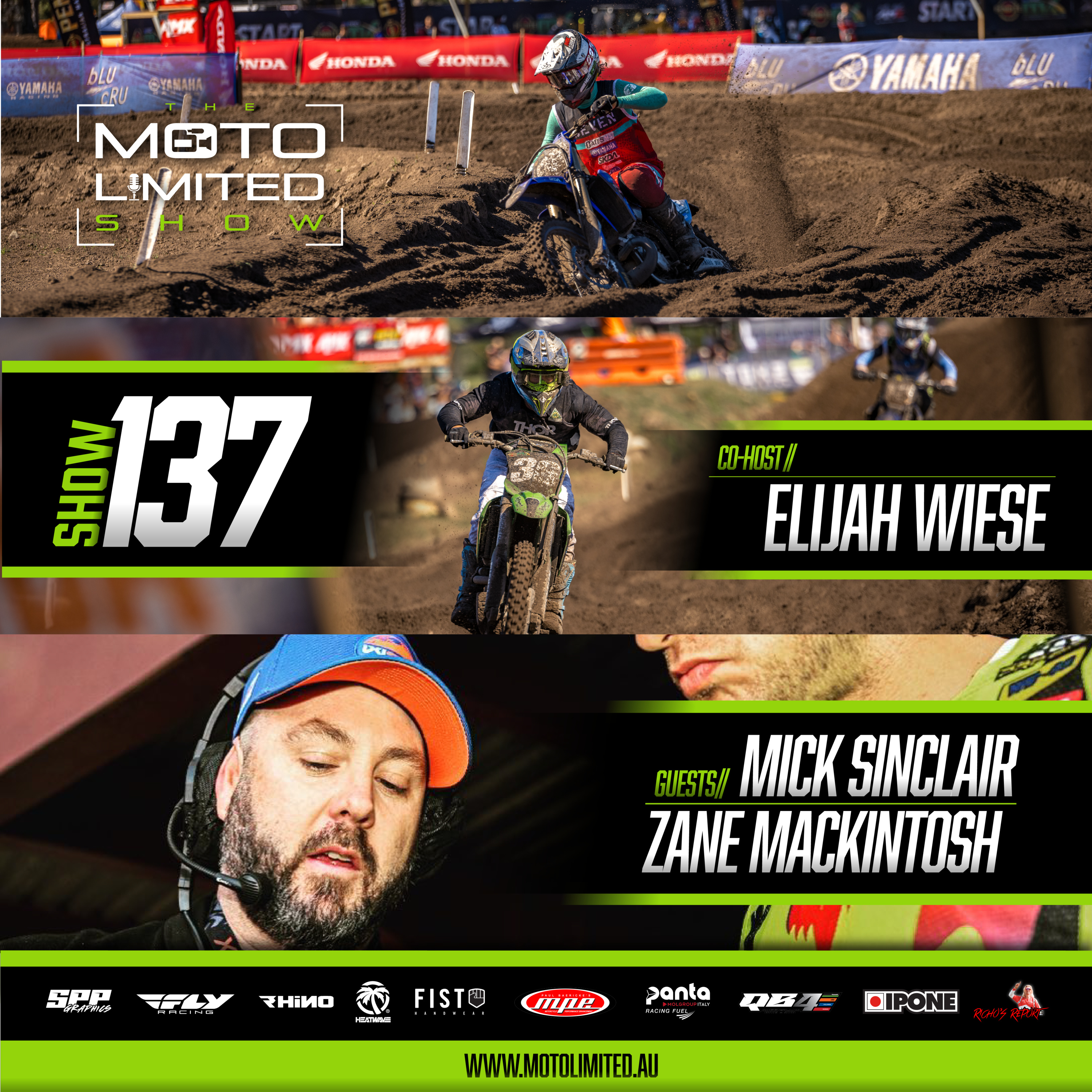 Show 137, Trent is back for another Moto Limited Show. On tonight's show, no in-studio guest but Elijah Wiese makes a return as the cohost. The boys talk Aus Sx and SMX. Mick Sinclair from AME calls in to answer all the boys' questions about the upcoming Aus Supercross Championship, the Privateer payout, and the CR22 cup.