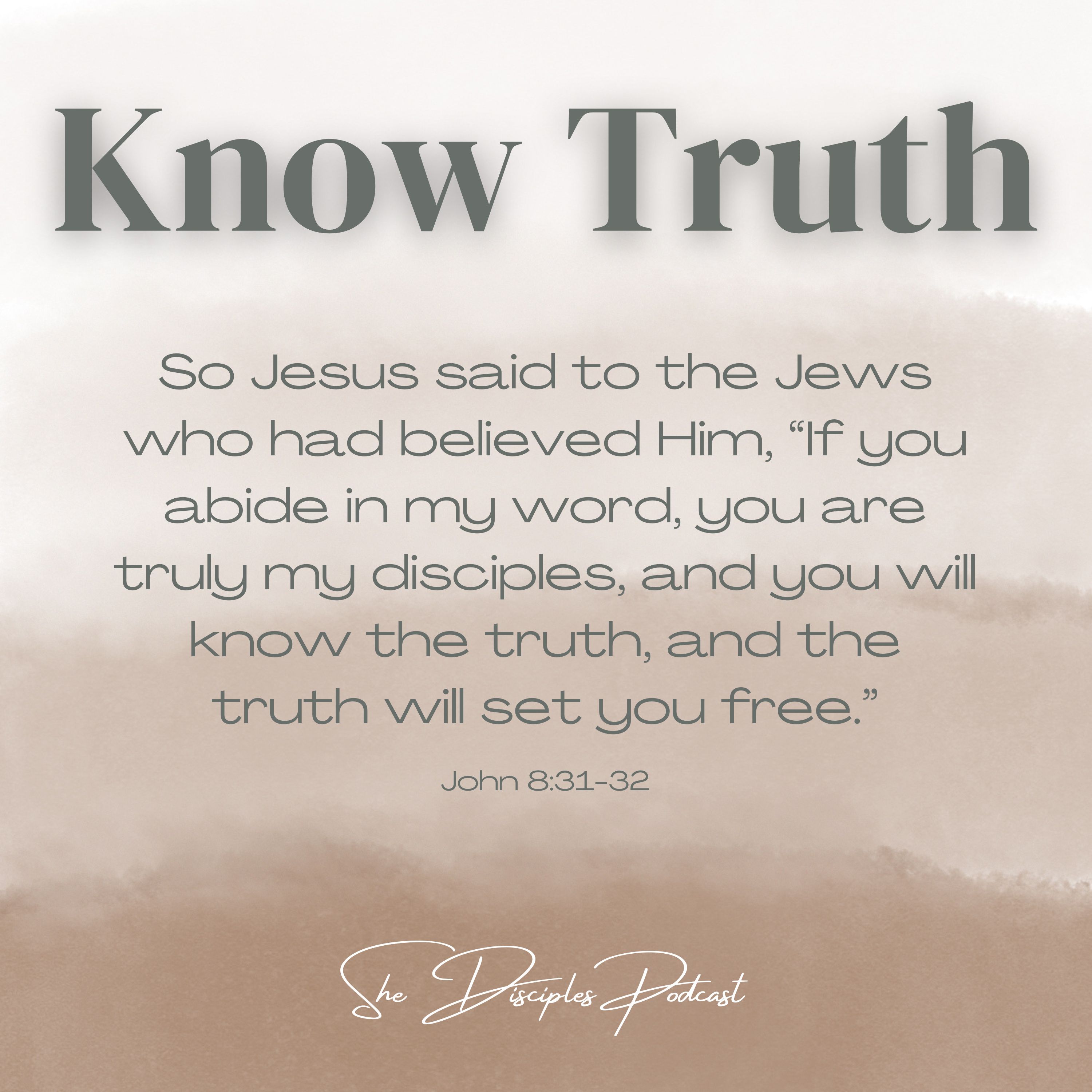 Truth is more than just words on a page or a verse here and there memorized. Truth infiltrates every aspect of your life. That is what it means to know truth. It is a presence. It has a seat at your table. It has a say in your decisions. It holds you accountable. It convicts and it comforts. Do you know truth?