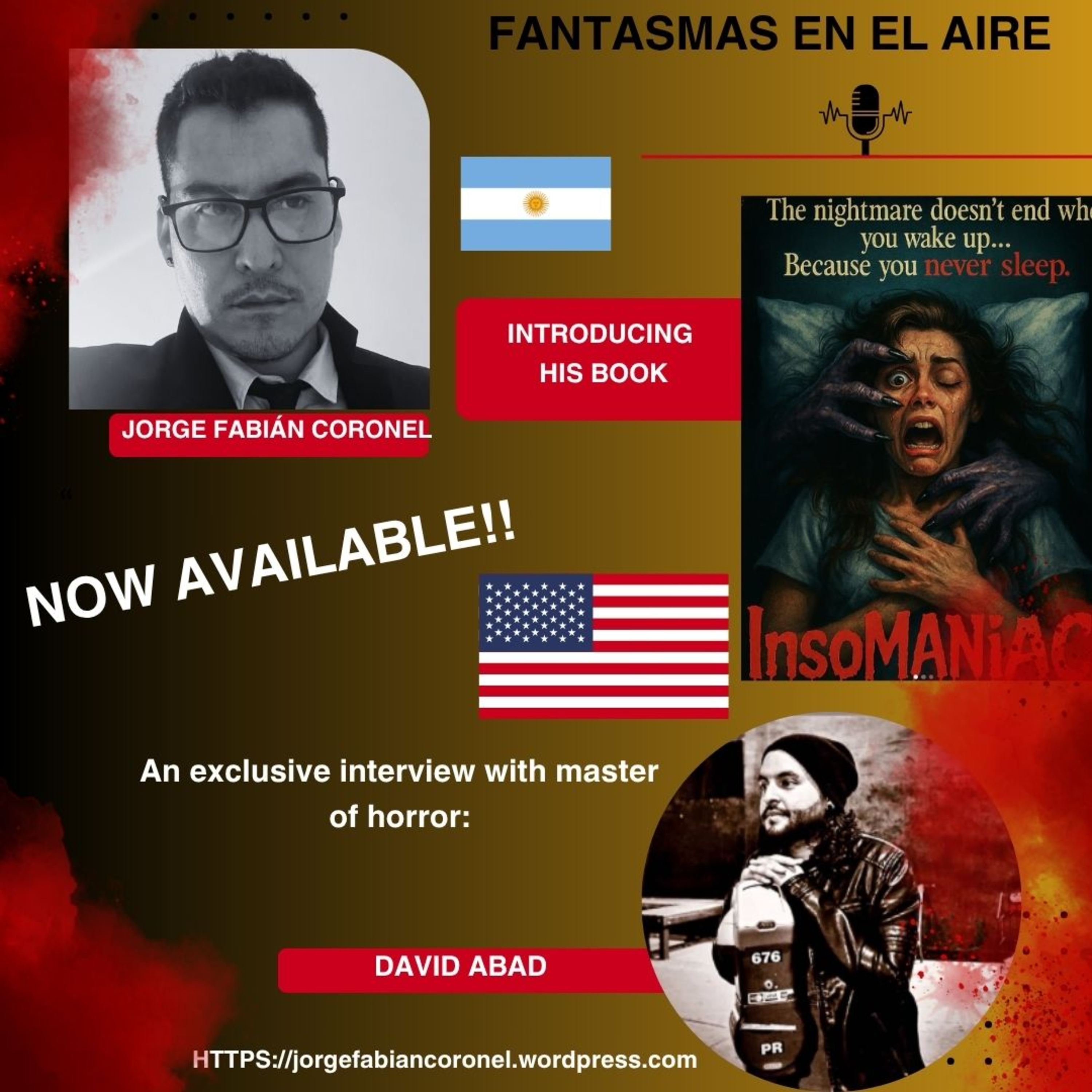 #InsoMANIAC #DavidAbad #FantasmasEnElAire #HorrorPodcast #DarkLiterature #HorrorWriters #WritersOfInstagram #AuthorInterview #HalloweenVibes #SpookySeason #CreepyStories #FearAndFiction #MusicAndWriting #DarkCreativity #BookLovers #PodcastOfTheNight #HorrorCommunity