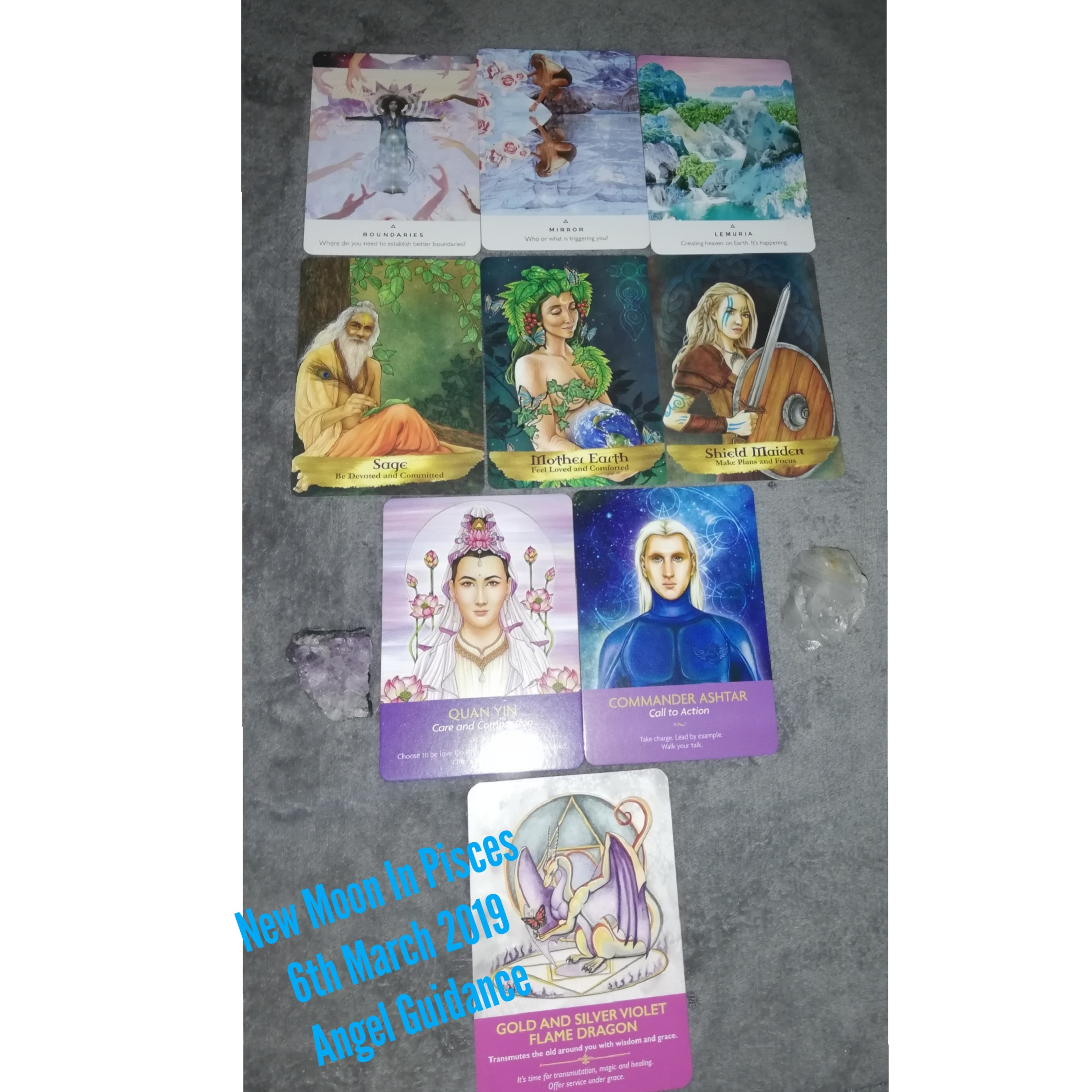 New Moon in Pisces 6th March 2019 Angel Guidance. So last week was tough. This month and New Moon in Pisces brings New levels of light frequency's. This month is going to be really busy and exciting. We have Mercury retrograde on the 5th , Then we have this amazing New Moon on the 6th , Then we have the Full Moon on the 20th , Then the Spring Equinox on the 21st. With this New moon like others is a time to set intentions for the next month, but this new moon is in Pisces which is the last sign in the zodiac. This means it is very powerful for new beginnings, but a lot of these new beginnings are centered around compleating a cycle , letting go of the old and releasing making way for new levels of light like. It's important to stay centered and present as we review , reflect and release. Remember to be kind with your thoughts and words. A lot of self love is needed for this retrograde and New Moon. As ever we have amazing spread ahead to help with more insight into this amazing New Moon in Pisces. Enjoy beautiful souls. Love Light & Blessings