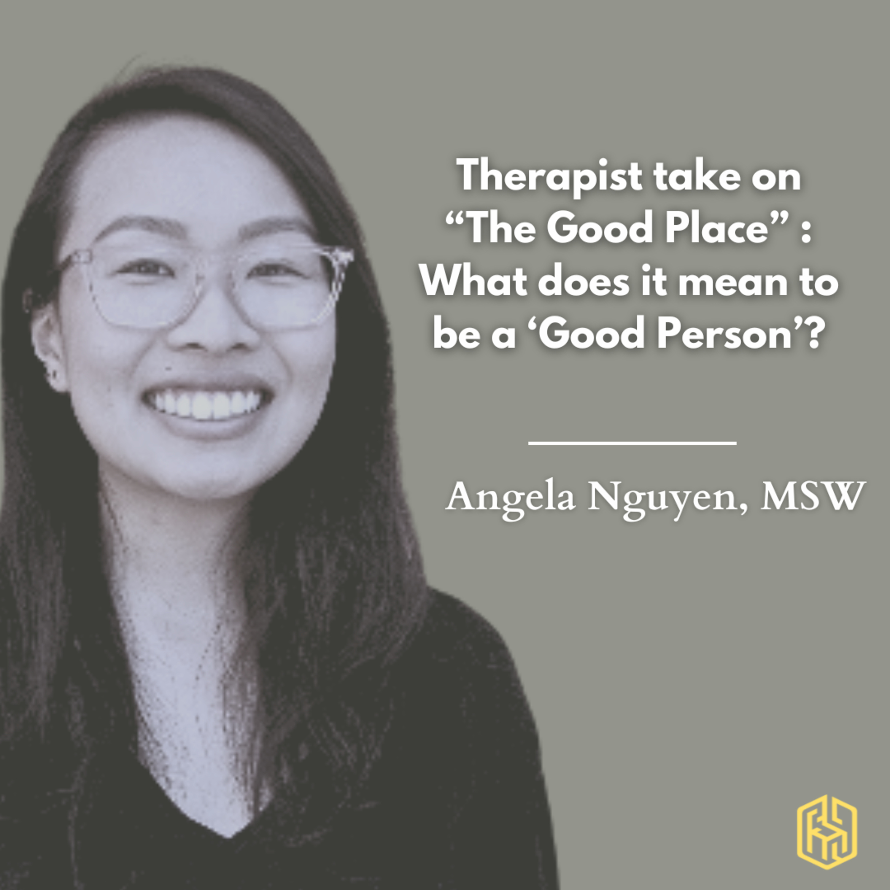 Angela Nguyen, MSW and Helen have a conversation about the hit show, "The Good Place". They discuss what it means to be a 'good person', working through guilt and shame, and the importance of growth and healing.