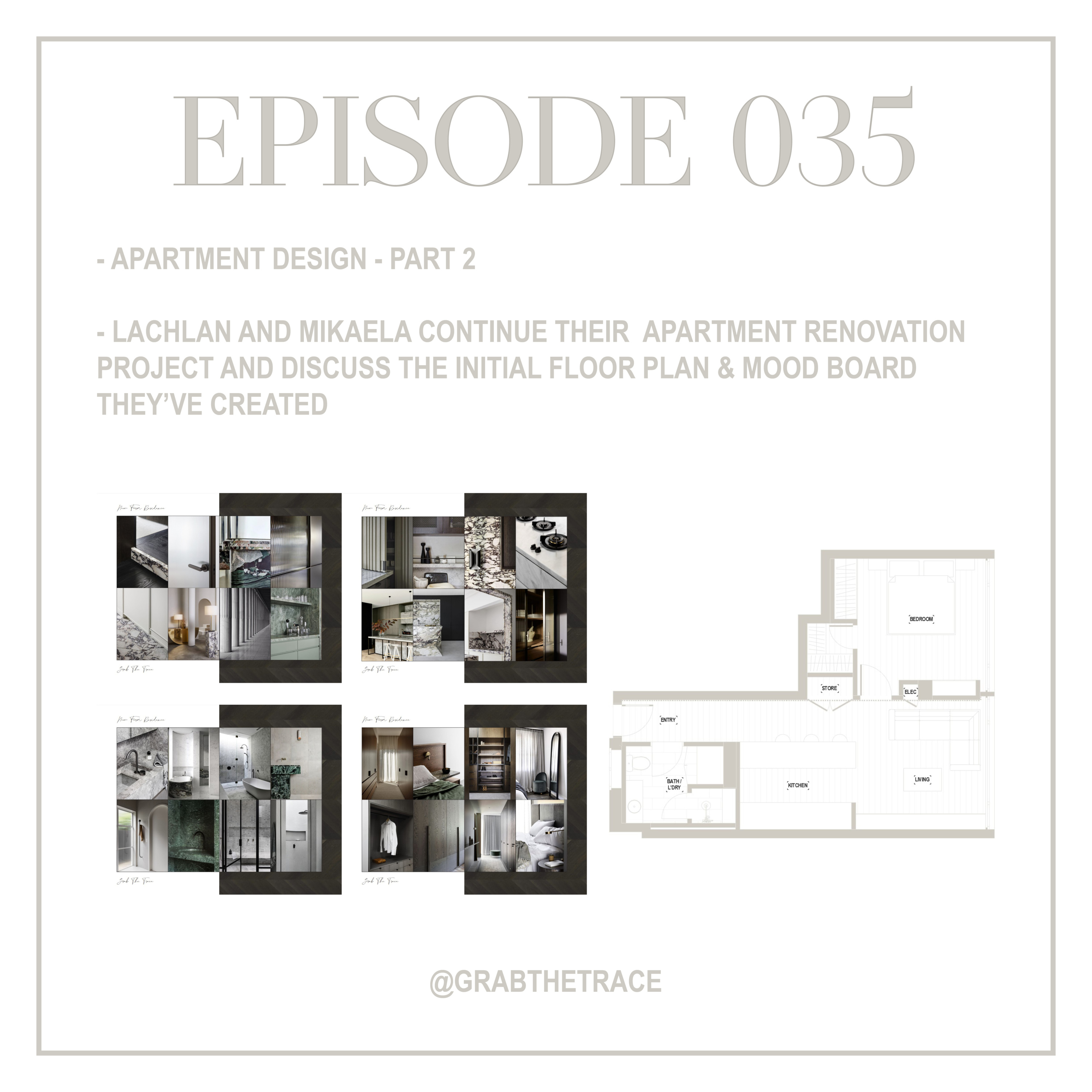 We're back in the seat with the next episode in our apartment design series for Grab The Trace! This week we continue our apartment renovation project discussing the initial floor plan and a jaw dropping mood board.