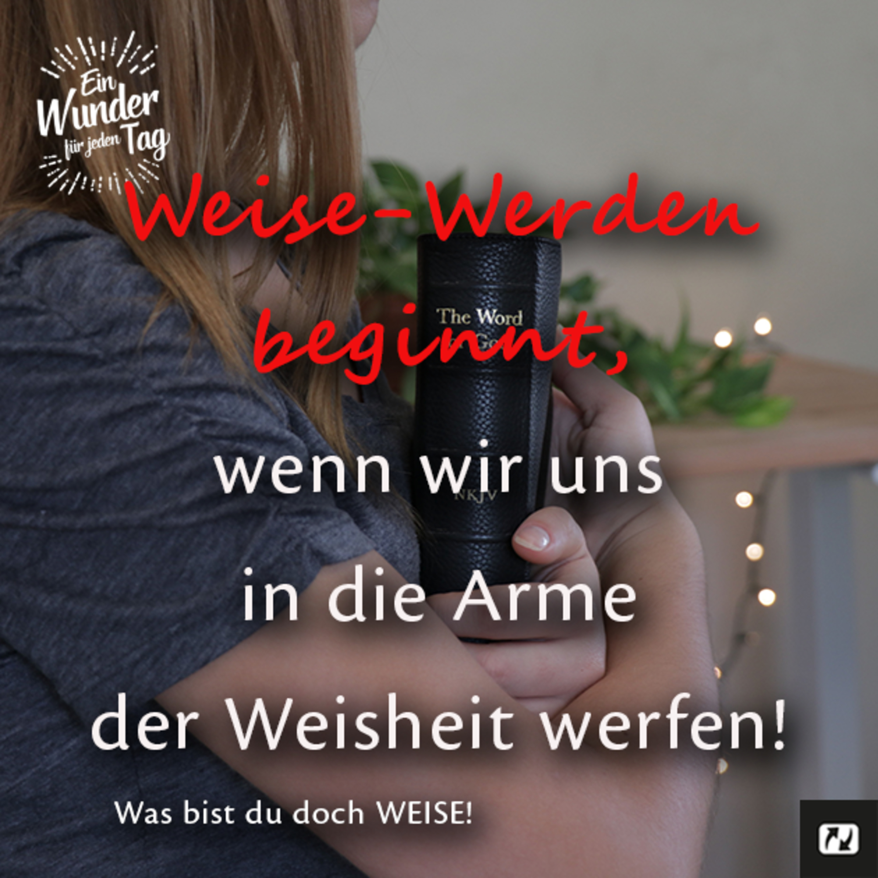 “Liebe die Weisheit, so wird sie dir Ansehen verschaffen; halte sie in Ehren, dann wird sie dich zu Ehren bringen. Sie wird dich schmücken wie eine wertvolle Krone.” (Sprüche 4:8 HfA)