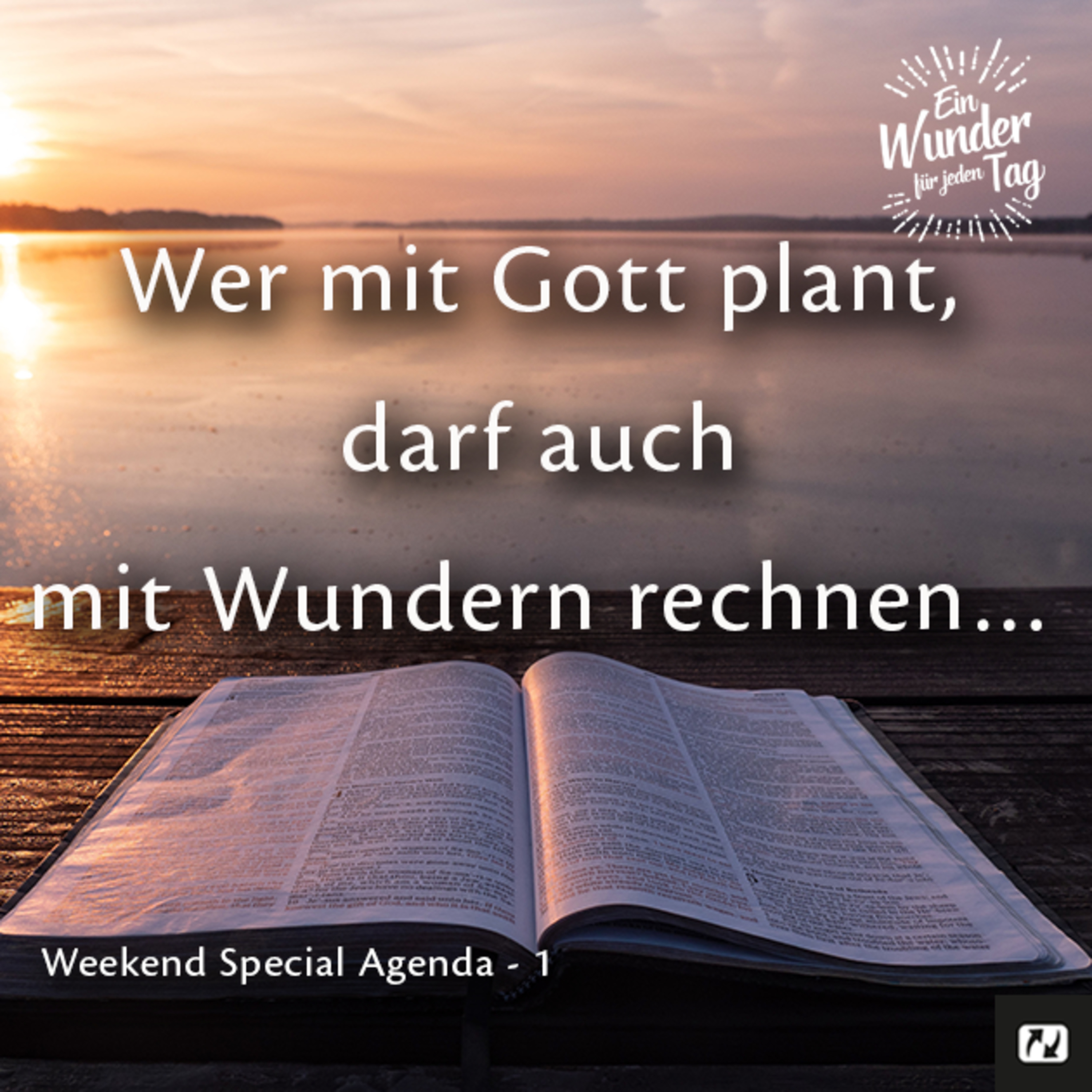 Dieses Wochenende möchte ich dich gerne daran erinnern, wie wichtig es ist, TÄGLICH neu an Gottes WUNDER-volle Möglichkeiten für dein Leben zu glauben! Und weil uns Menschen das nicht immer so leicht fällt, habe ich extra ein Buch, eine Agenda sozusagen, für dich geschrieben, die dir diesen Start in den Tag erleichtern - und Gottes Liebe und Seine Zusagen in Erinnerung rufen sollen. Die “Ein Wunder für jeden Tag” Agenda! Mehr Infos hierzu erhältst du am Ende dieser E-Mail.
