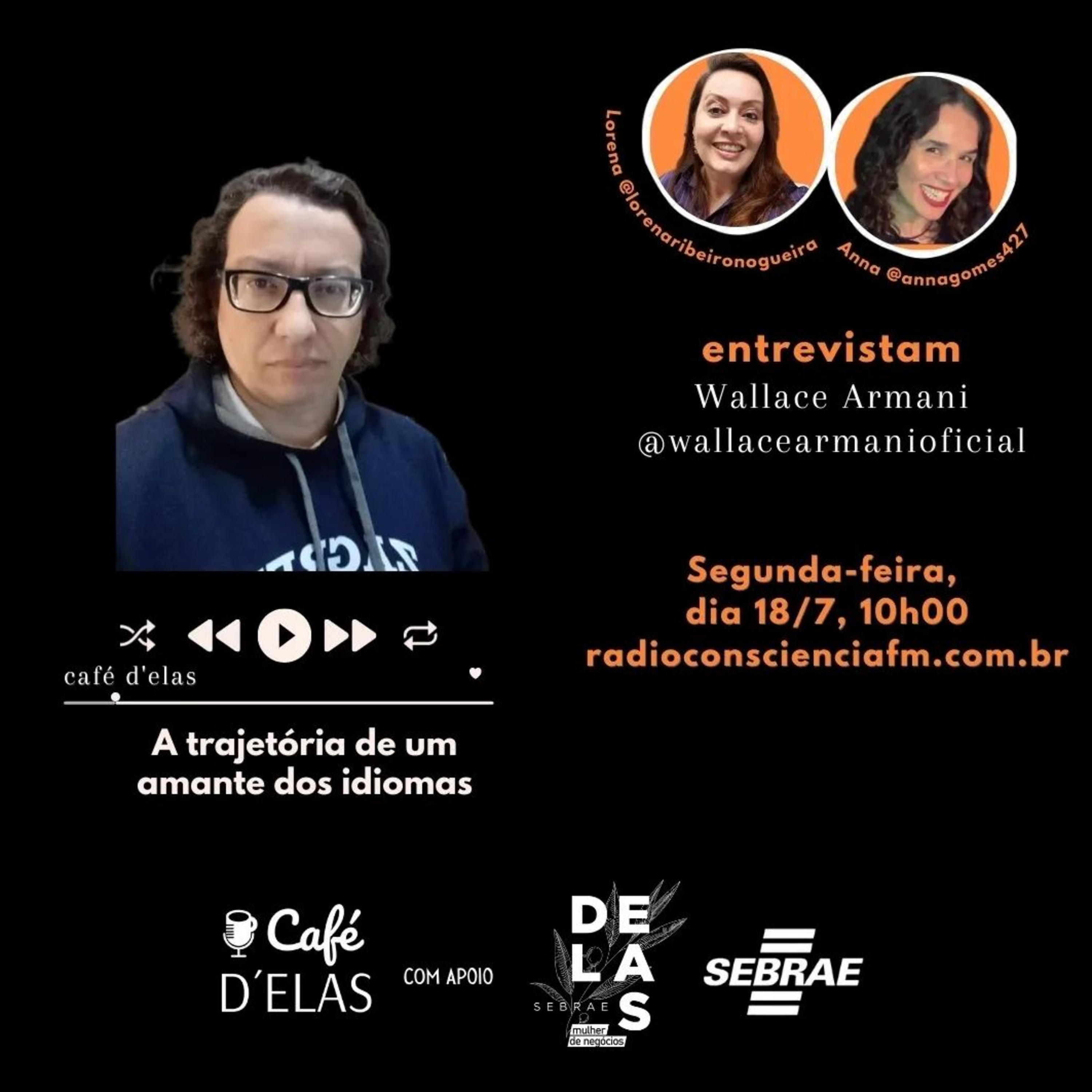 Nosso entrevistado do dia 18/07, Wallace Armani @wallacearmanioficial, vai contar a sua história na parte da fala, o saber se comunicar em mais de 13 idiomas 🇧🇷🏴🇮🇹🇷🇺🇱🇹🇸🇰🇲🇰🇩🇪🇳🇱🇫🇷🇱🇻🇲🇽