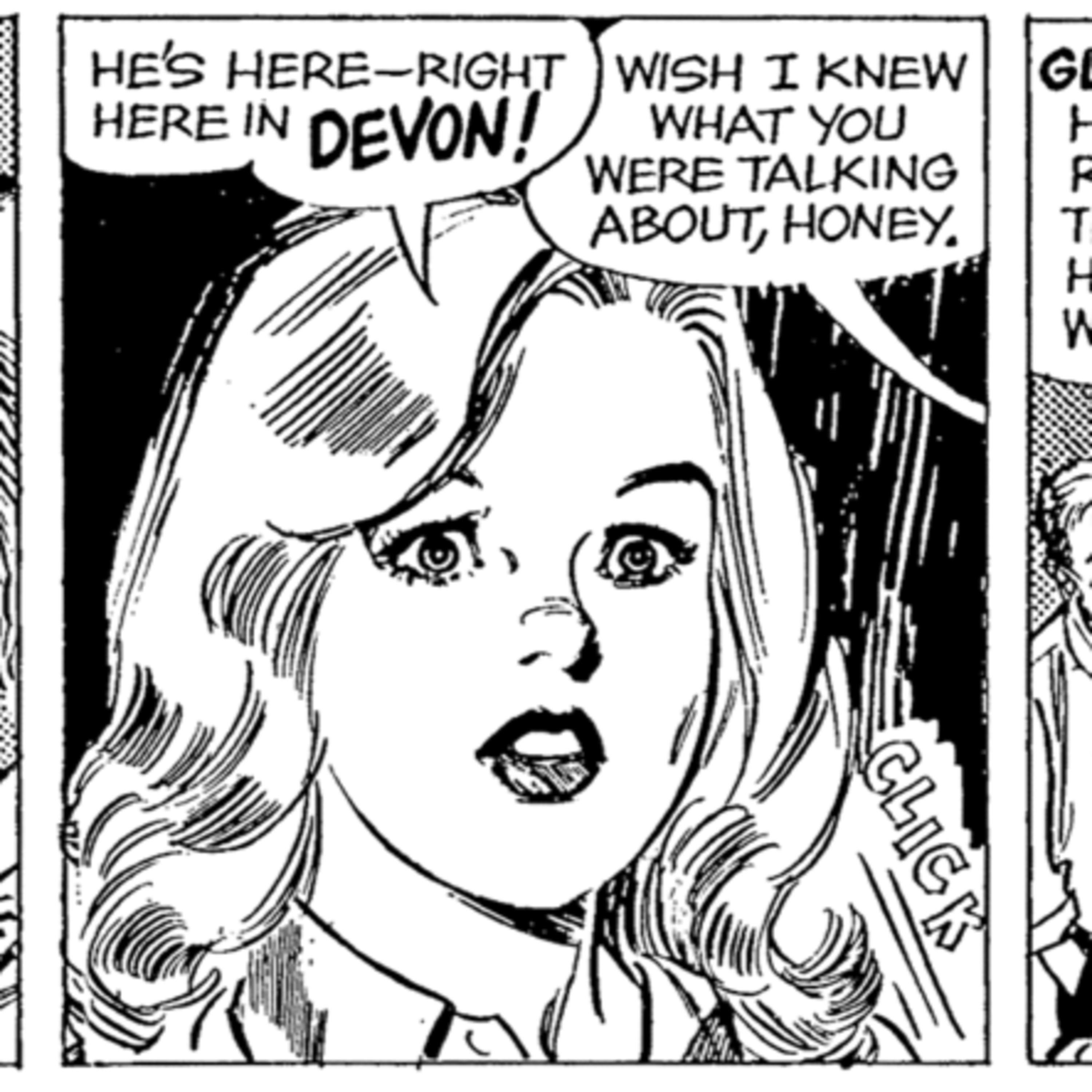 Eve hung up the phone with a click and stared into space for almost an entire minute before she spoke. “He’s here… right here in Devon!”
