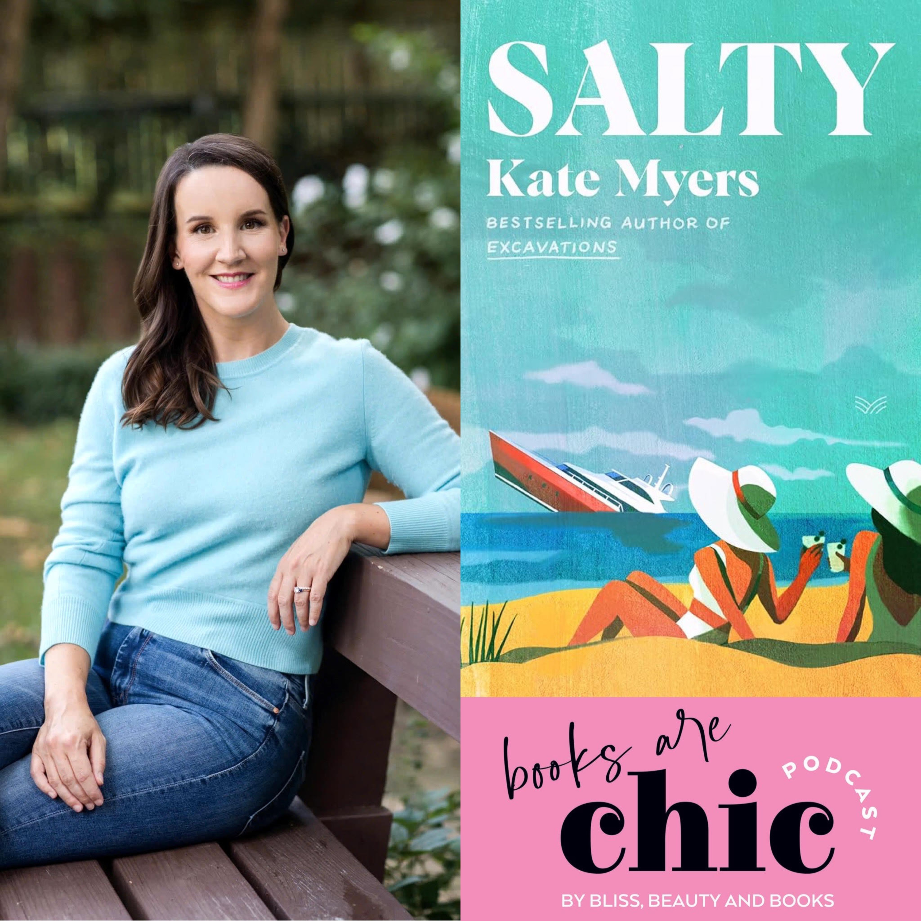 It was so much fun to welcome Kate Myers to Books are Chic for her latest, Salty. A perfect beach read with a little bit mystery, little drama and a whole lot of sisterhood. Think a triple mix of Schitt's Creek, Below Deck and Downton Abby- I know, dreamy. Kate and I chatted her start in writing, how she wrote her first novel- Excavations and what the future holds. Hint, hint it includes Peacock and Amy Poehler.