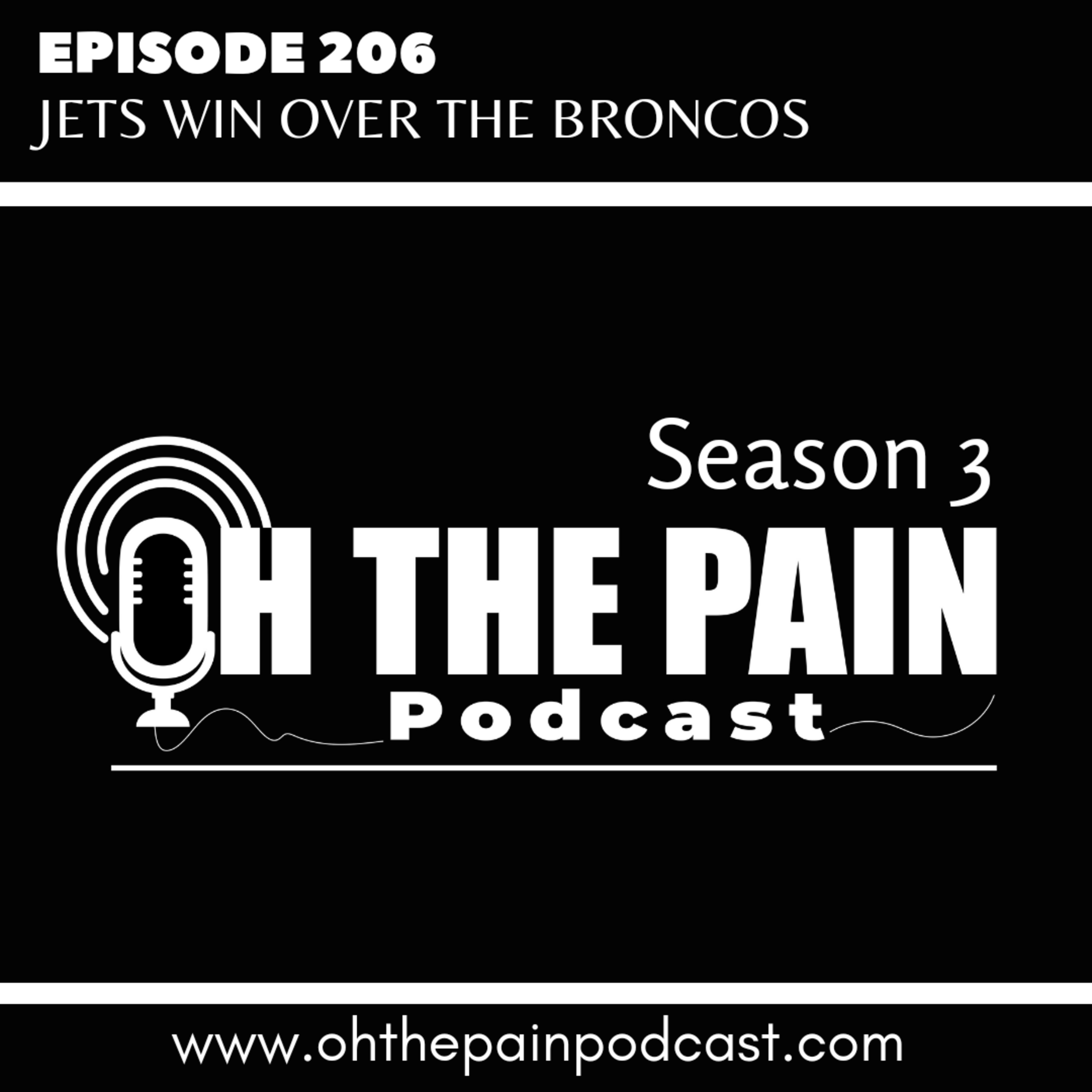 Episode 206 Oh The Pain Podcast with Joe Benigno. Breece Lightning in Denver. Breaking down the Jets won over the Broncos. The Giants loss in Miami. Week 5 in the NFL.