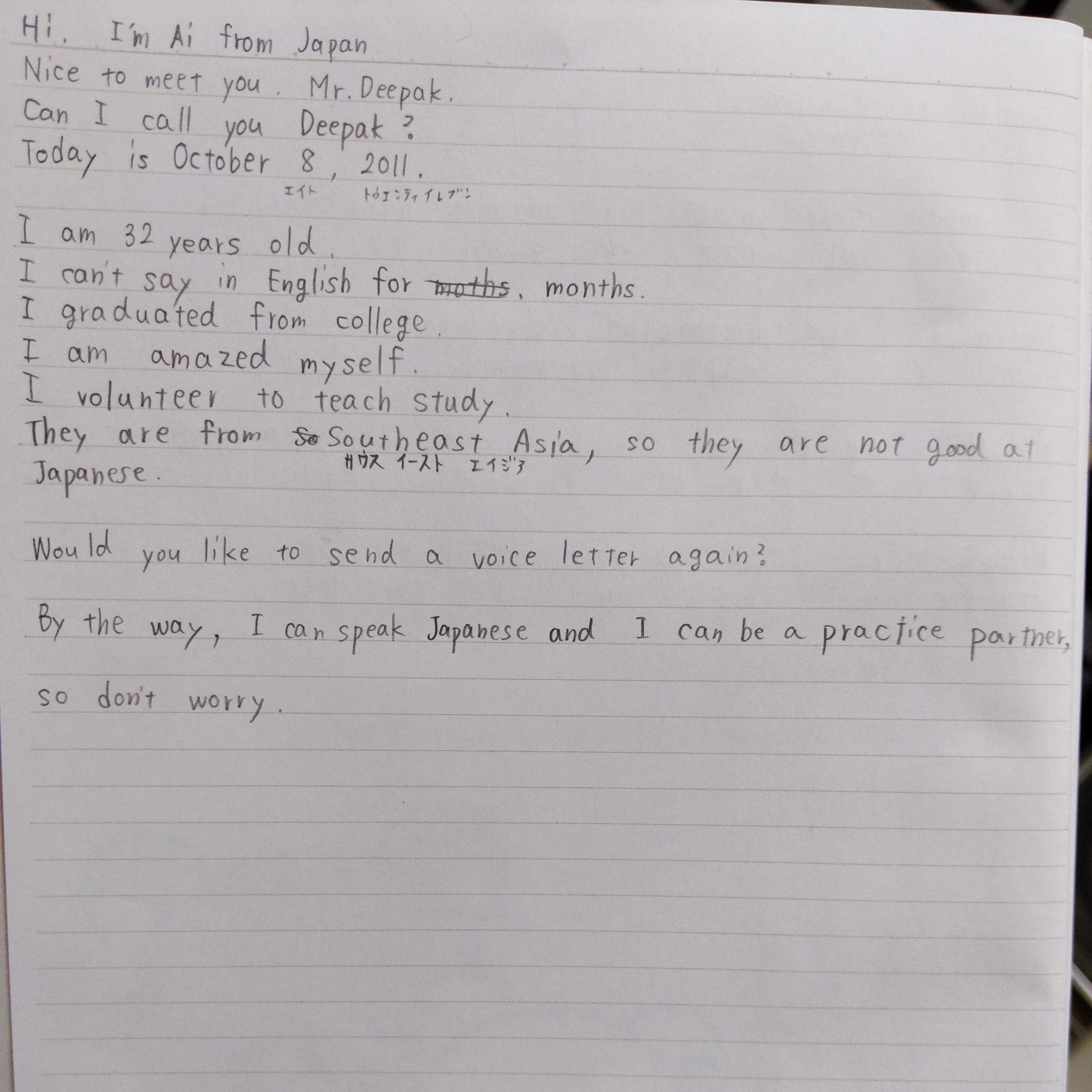 I'm looking for a partner at Exchange Learning.I am studying English, Nepali and Vietnamese.
