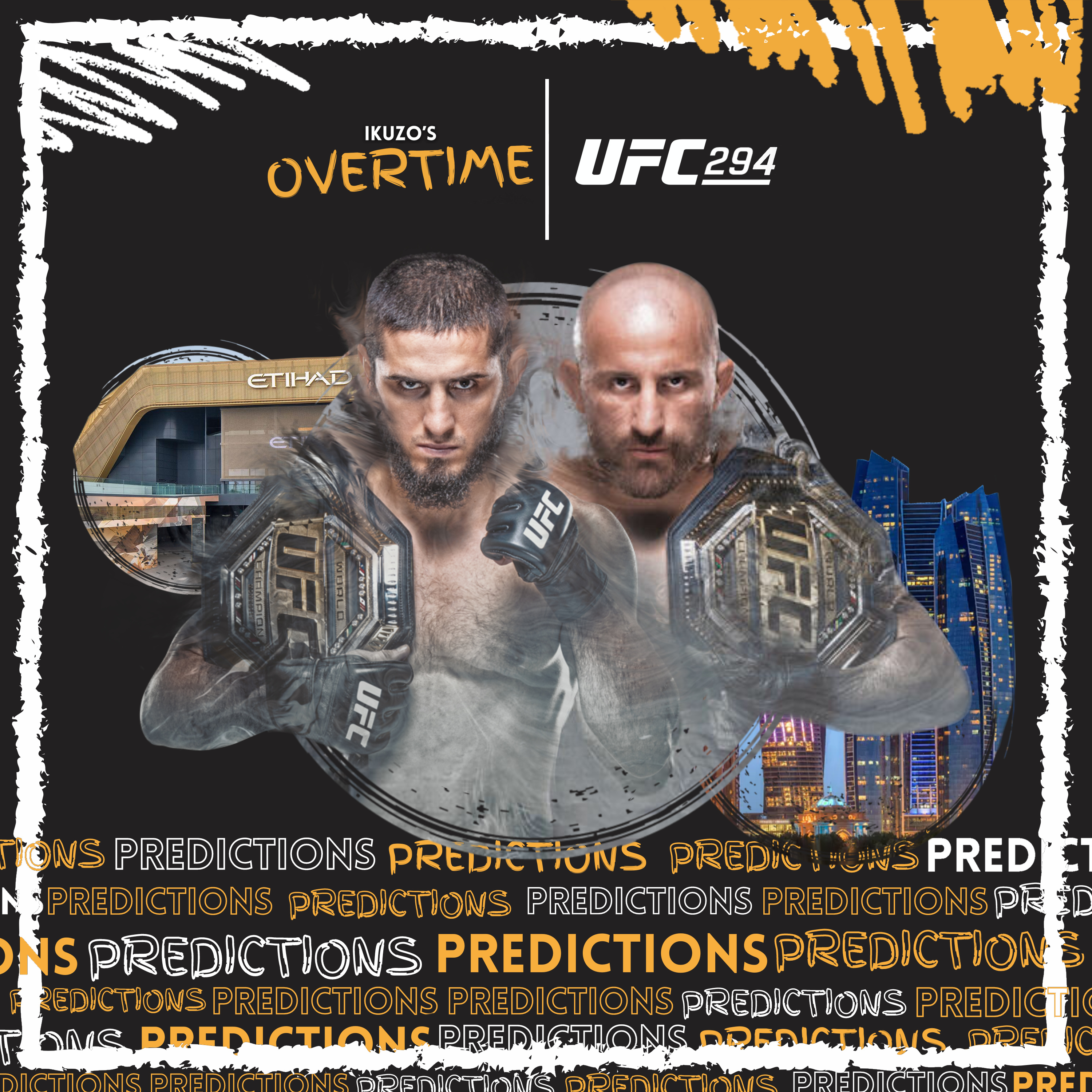 UFC 294 features Islam Makhachev defending his lightweight crown in a rematch against 145 king, Alexander Volkanovski. Abu Dhabi will also see Kamaru Usman stepping in on short notice against returning Wolf, Khamzat Chimaev in a fight for potential next contender for 185 throne while Johnny Walker will test his momentum against number 2 light heavyweight, Magomed Ankalaev. Check out predictions for these and other exciting bouts and enjoy!