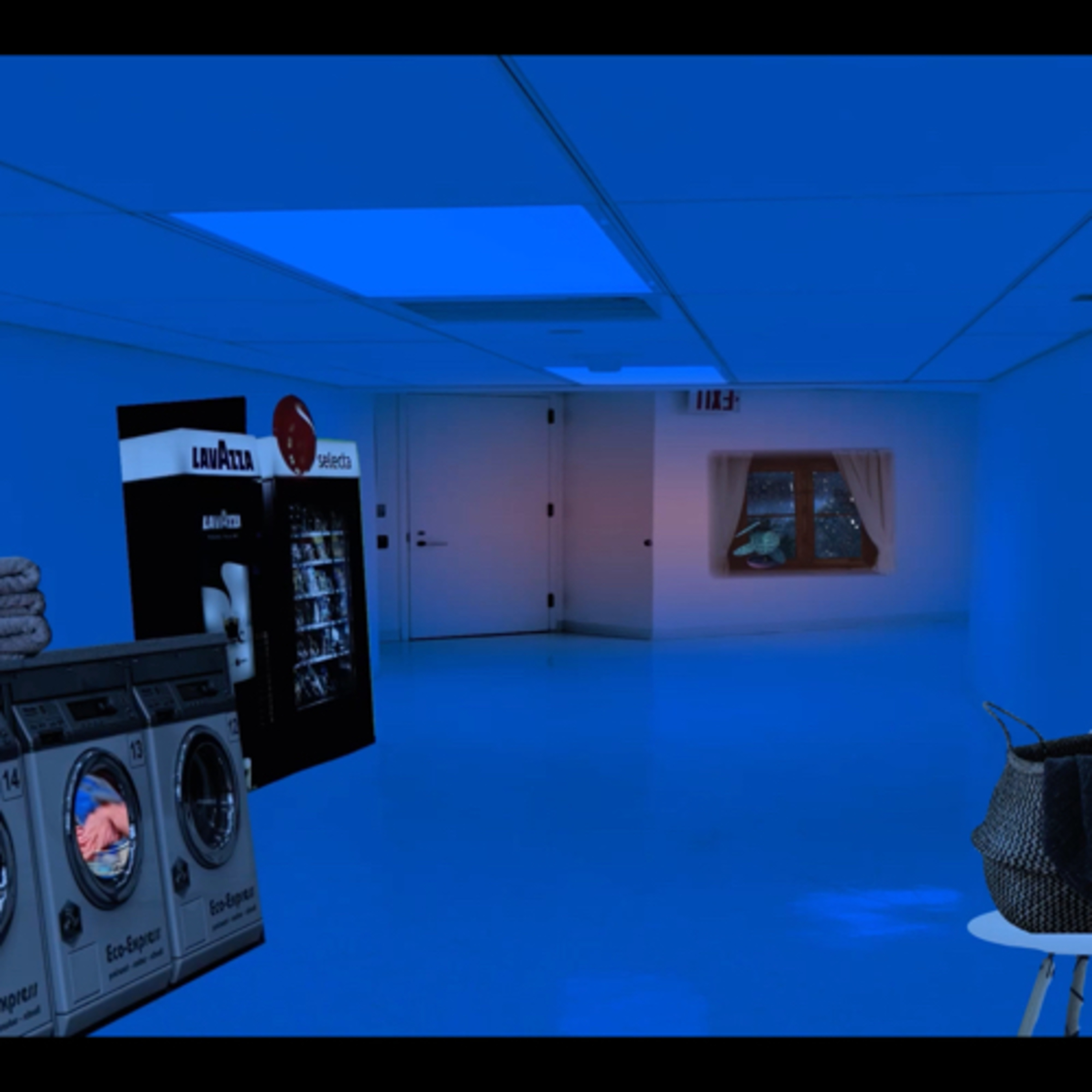 Black Light Laundry Room on Rainy Night | Washer & Dryer Sounds