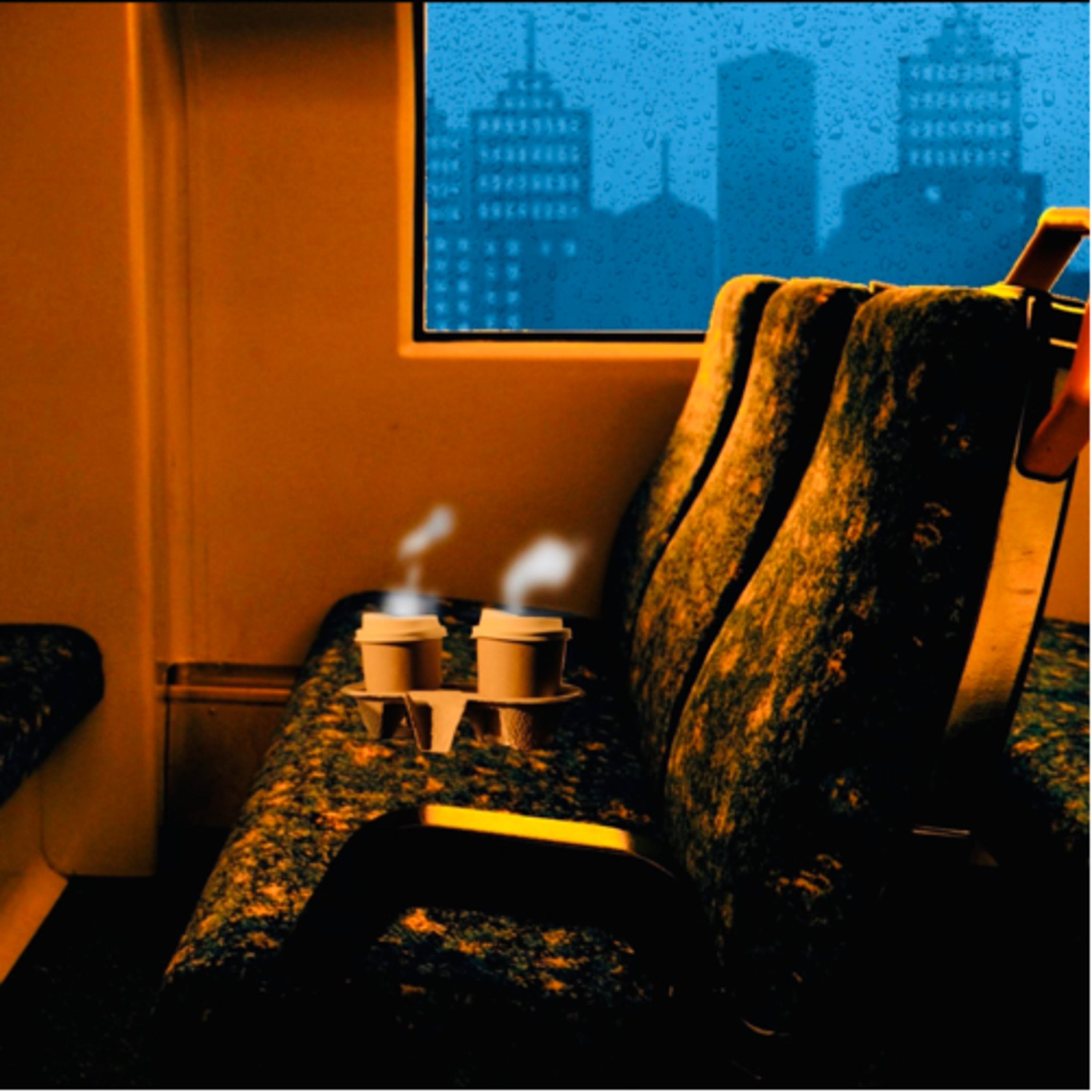 Cozy train ride ambience & rain on window w/ warm drinks