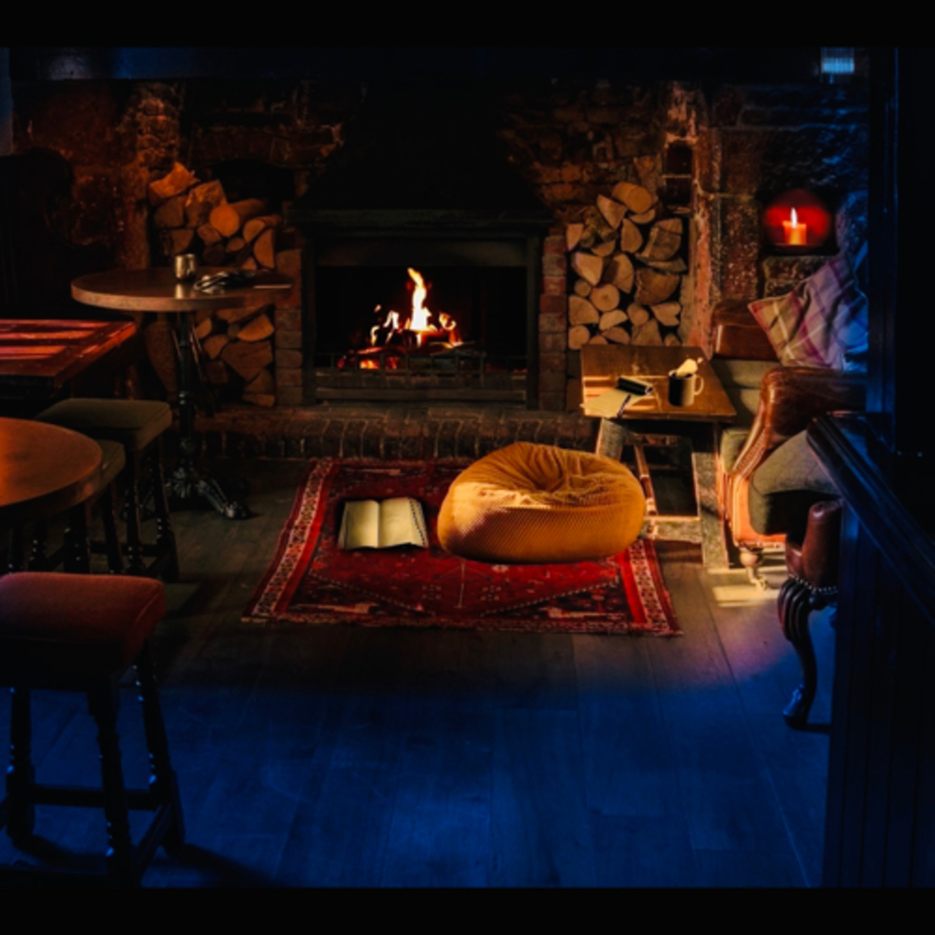 Gentle Fireplace While Reading an Old Book & Periodically Jotting Notes