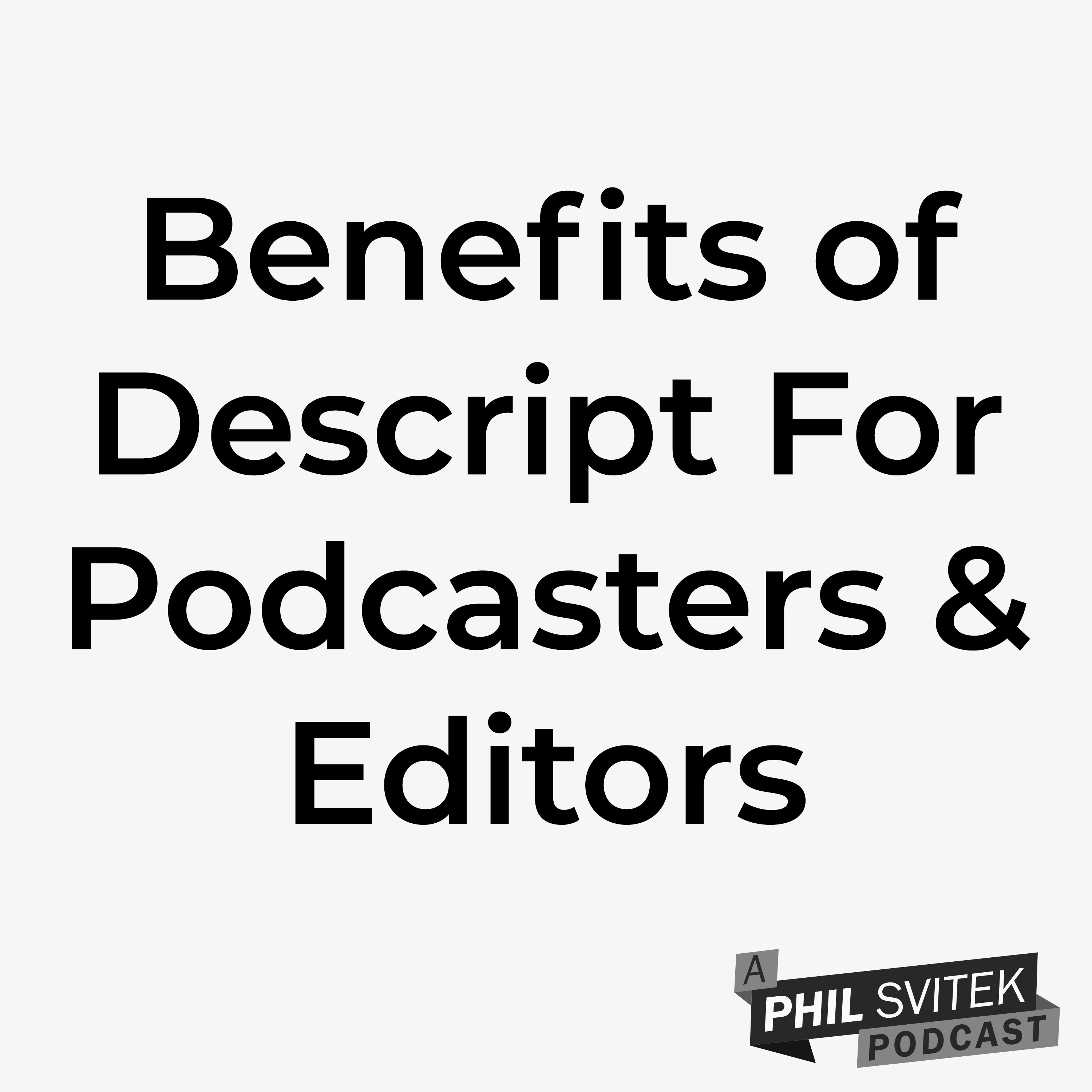 No, this is not an ad for Descript (https://www.descript.com/)—I pay to use it because I think it's a powerful tool in my box of tricks when it comes to podcast and video editing. In this episode I showcase a bit of my workflow so you can see the various ways it may be beneficial to you. After listening, kindly feel free to ask questions or offer opinions of your own, whether down in the comment section or by hitting me up on social media @PhilSvitek. Lastly, for more free resources from your 360 creative coach, check out my website at http://philsvitek.com.
