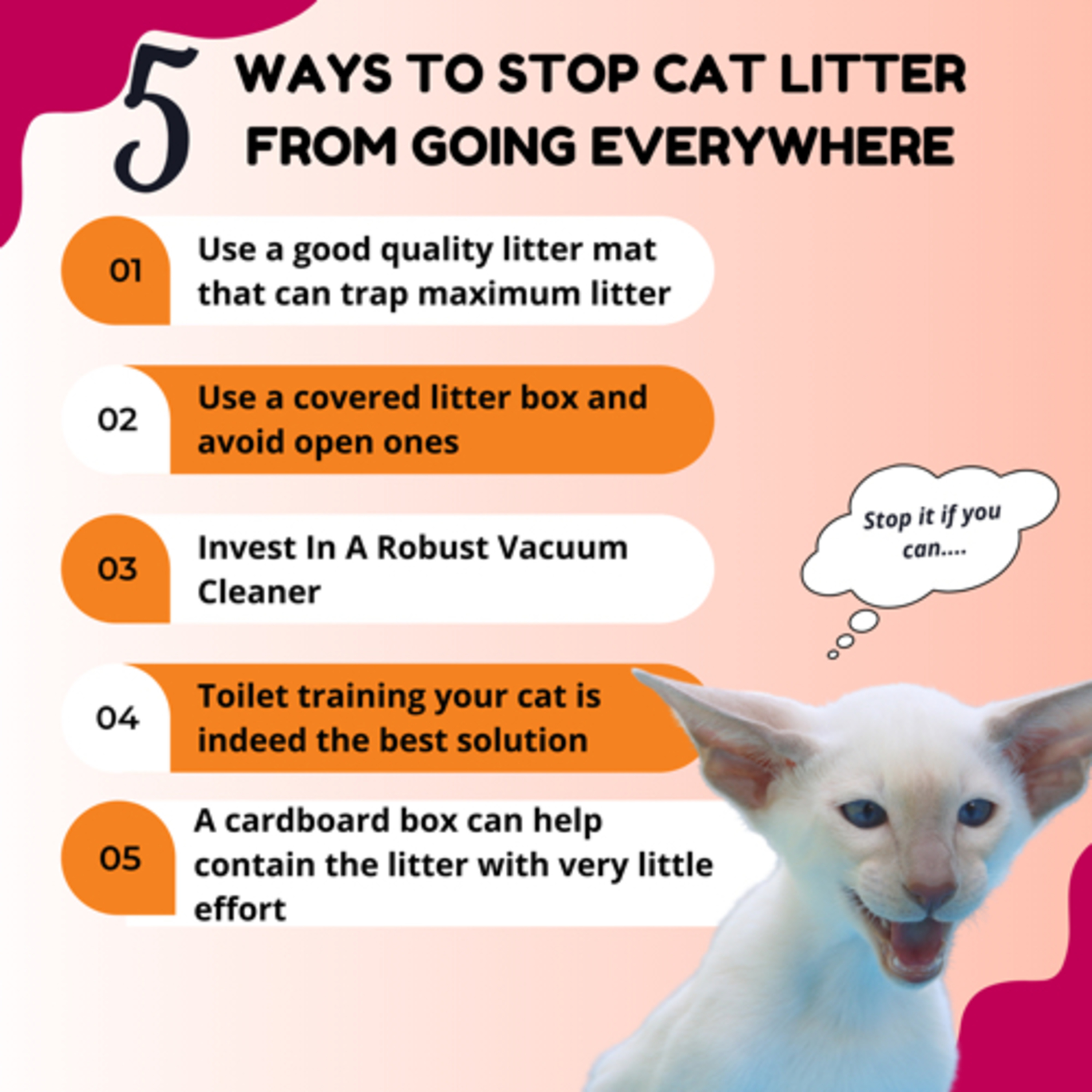 And though it is quite easy to clean up cat litter that goes everywhere, the best measure for this is to prevent it!