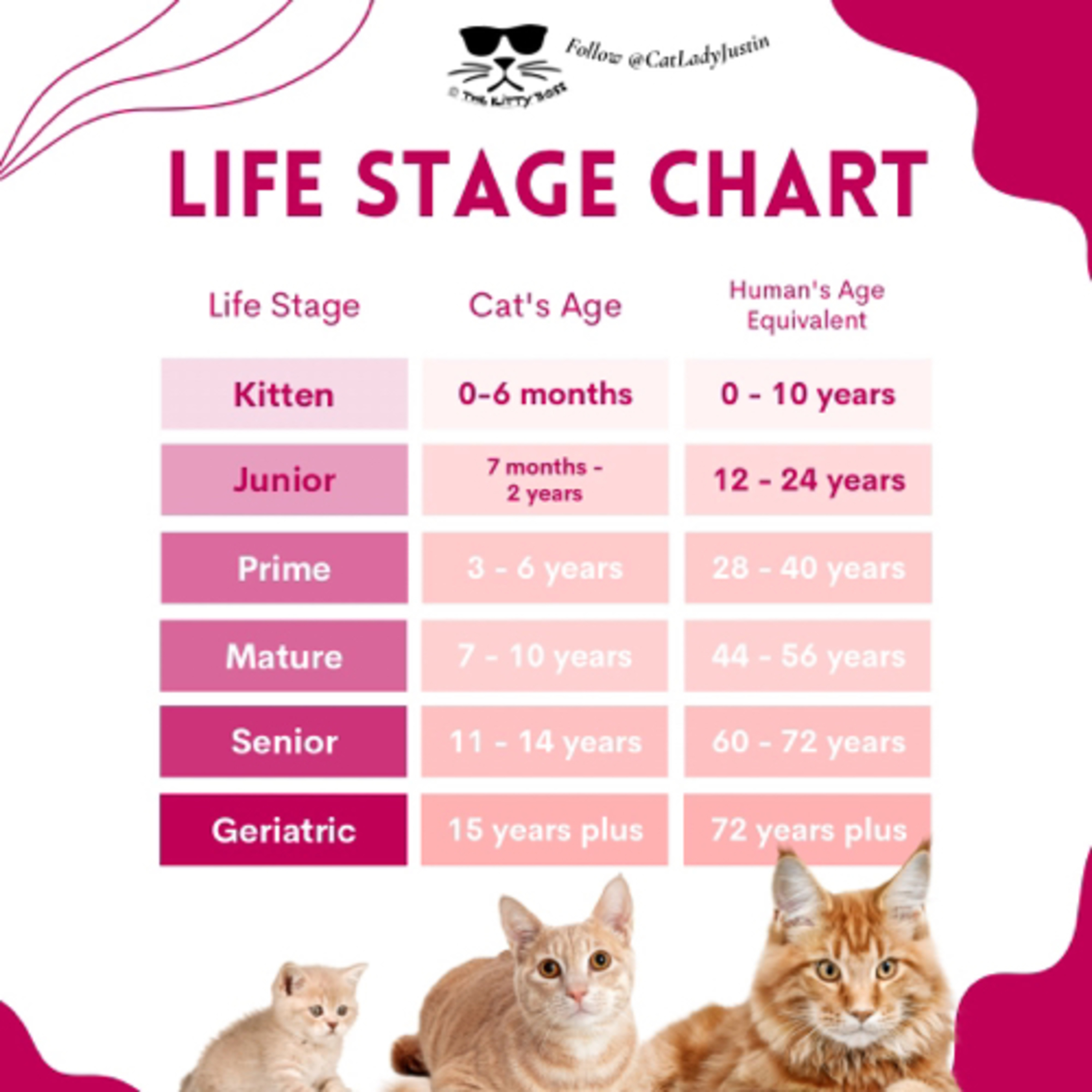 So take this chart with you and remember that past the 10-year mark, your cat is a grandma/grandpa, and you should care accordingly!