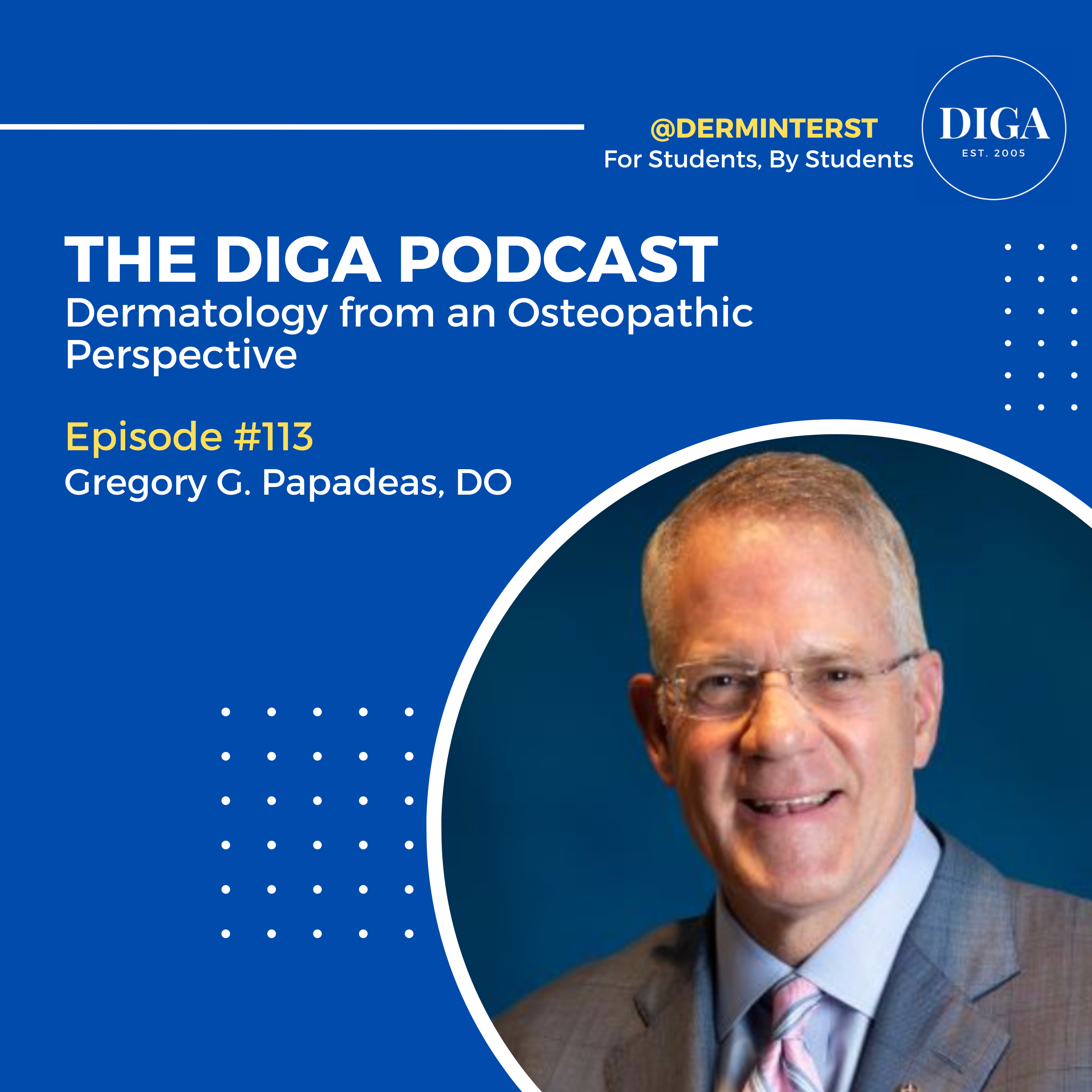 In this episode, we talk with Dr. Gregory G. Papadeas, DO. Dr. Papadeas attended the Philadelphia College of Osteopathic Medicine, interned at Garden City Hospital in Detroit, Michigan, and completed his dermatology residency at Ohio University, Grandview Hospital Medical Center. Dr. Papadeas is the founder and senior partner of Advanced Dermatology Skin Cancer and Laser Surgery Center. Advanced Dermatology is the largest private dermatology practice in the state of Colorado with 15 dermatologists. Dr. Papadeas is the past president of the Colorado Dermatologic Society and the American Osteopathic College of Dermatology. Dr. Papadeas joins us to talk about his career as a dermatologist, osteopathic history past and present in dermatology, and more! We hope you enjoy!!
