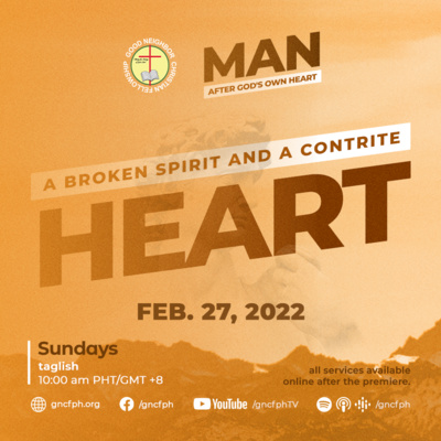 We will continue our last message for this February 2022 series entitled #ManAfterGodsOwnHeart. Our message for this Sunday is all about "#ABrokenSpiritAndAContriteHeart".