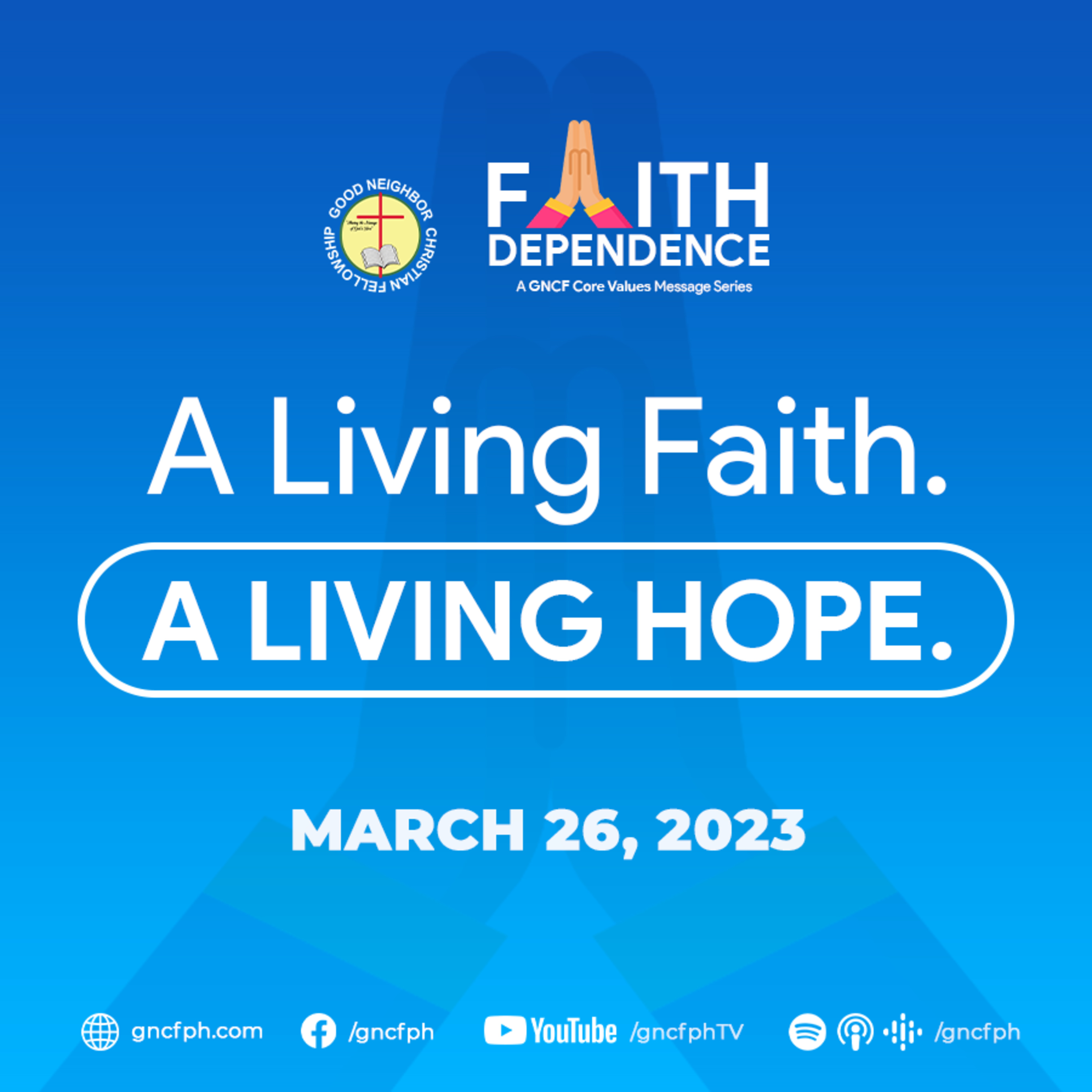 We will continue our message series entitled "GNCF Core Values" focused on "Faith and Dependence.". Our message for this last Sunday of March is all about "A Living Faith, A Living Hope."