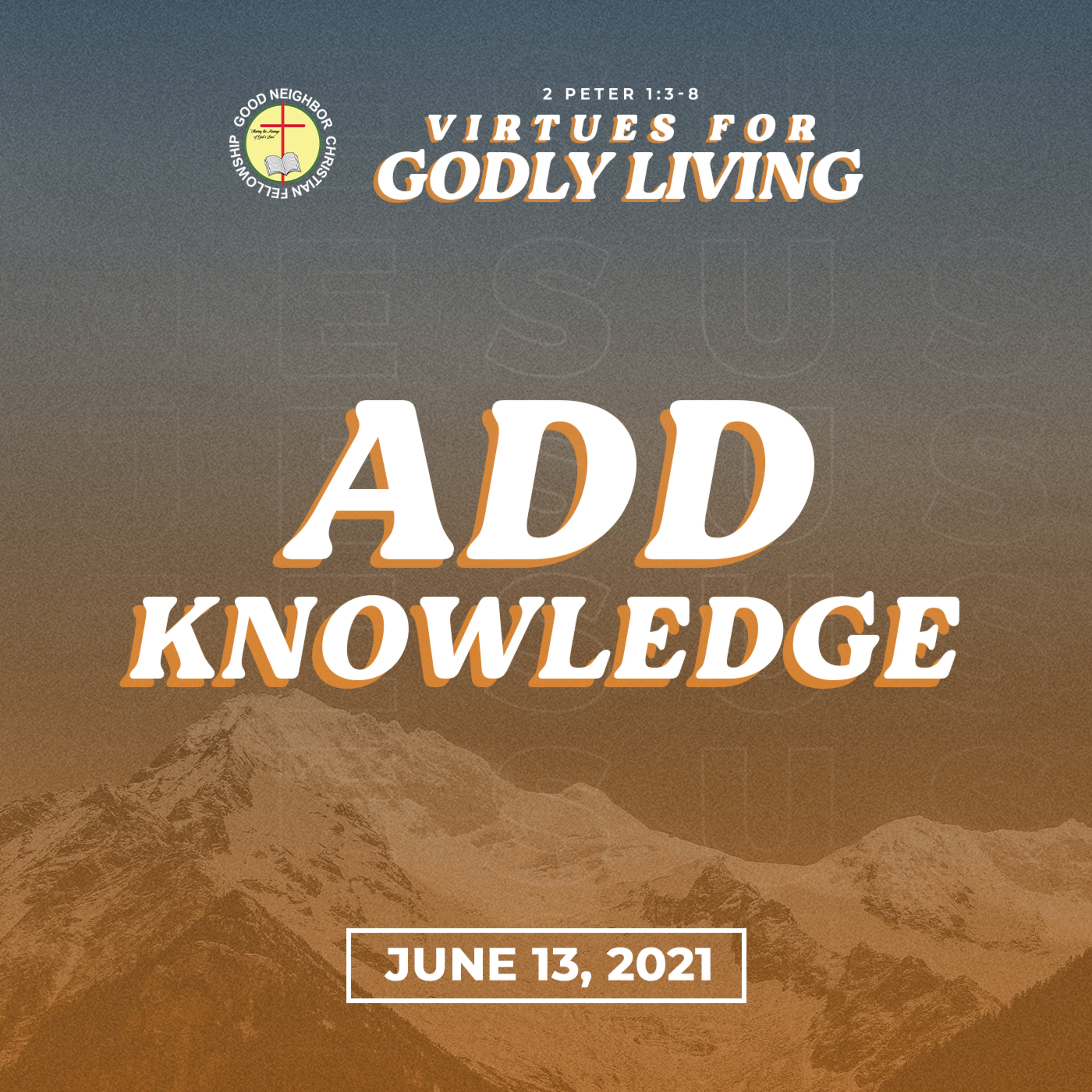 Add Knowledge | Pastor Ted Ribo (Full Message). We will continue our series for this month of June 2021 entitled #VirtuesForGodlyLiving, by our message this Sunday about "Add Knowledge".