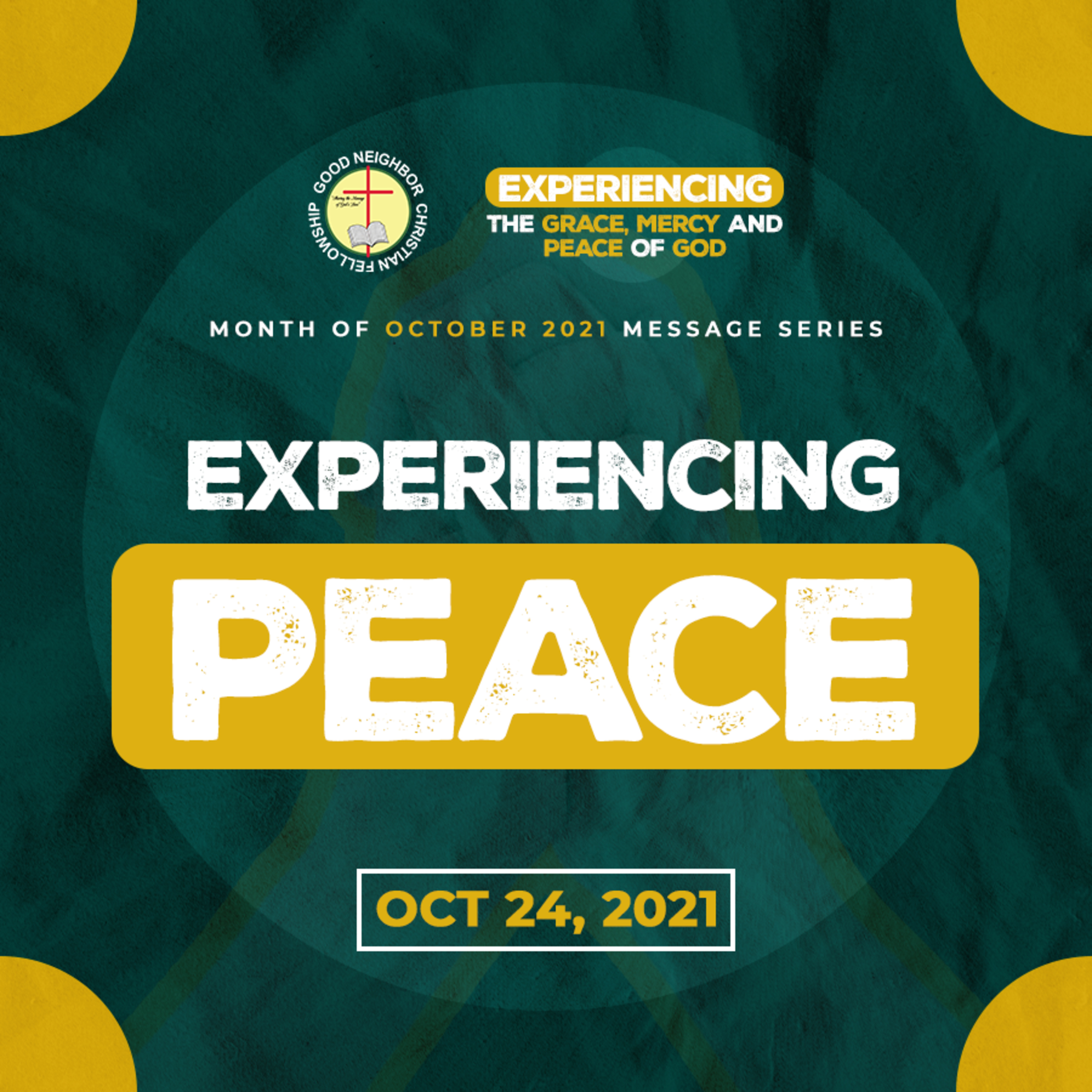 We will continue our series for this month of October 2021 entitled #ExperiencingTheGraceMercyAndPeaceOfGod, by our message for this Sunday is all about "Experiencing Peace".