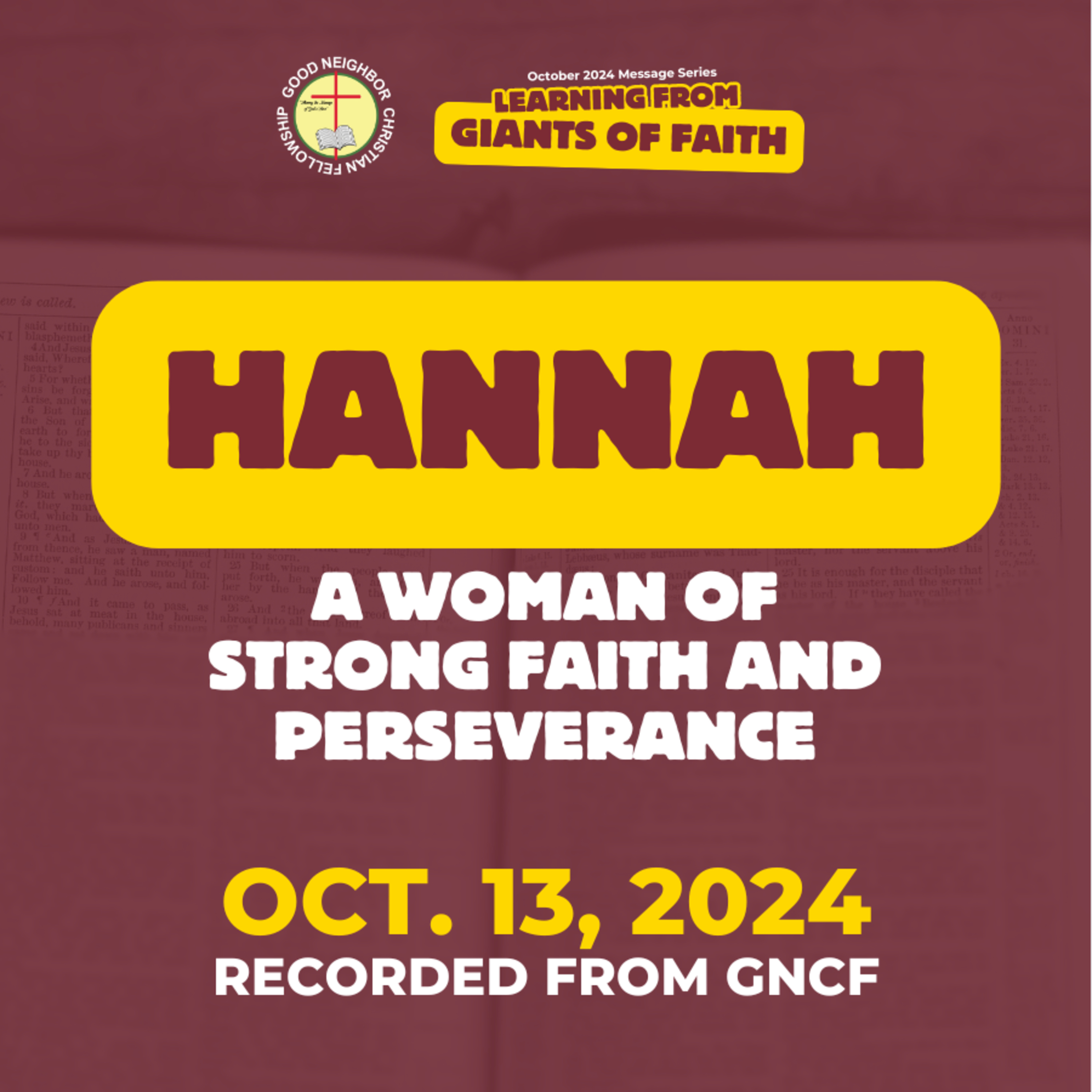 Topic: Hannah, A Woman of Strong Faith and Perseverance"