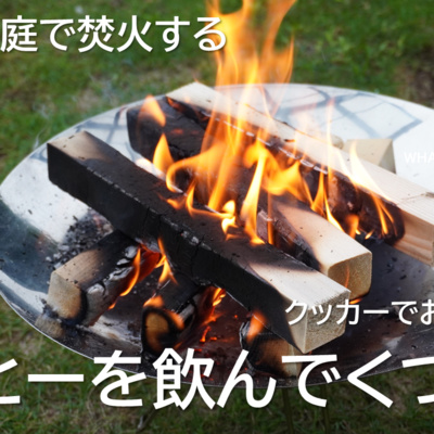検索No:203【キャンプ】薪を使い庭で焚火する、クッカーでお湯を沸かす、コーヒーを飲んでくつろぐ
