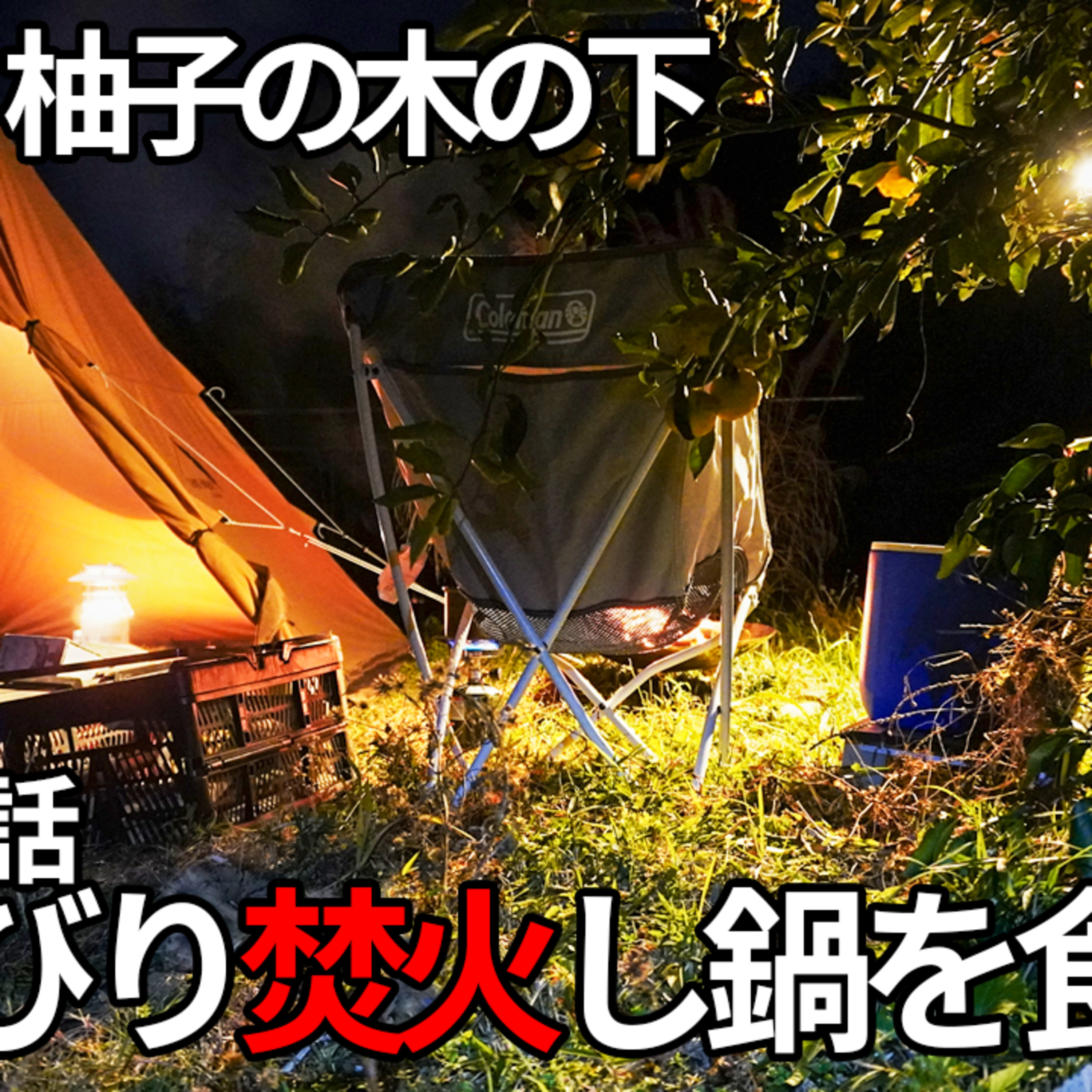 検索No:416【キャンプ】プライベートキャンプ場、柚子の木の下で、のんびり焚火し、鍋を食べる