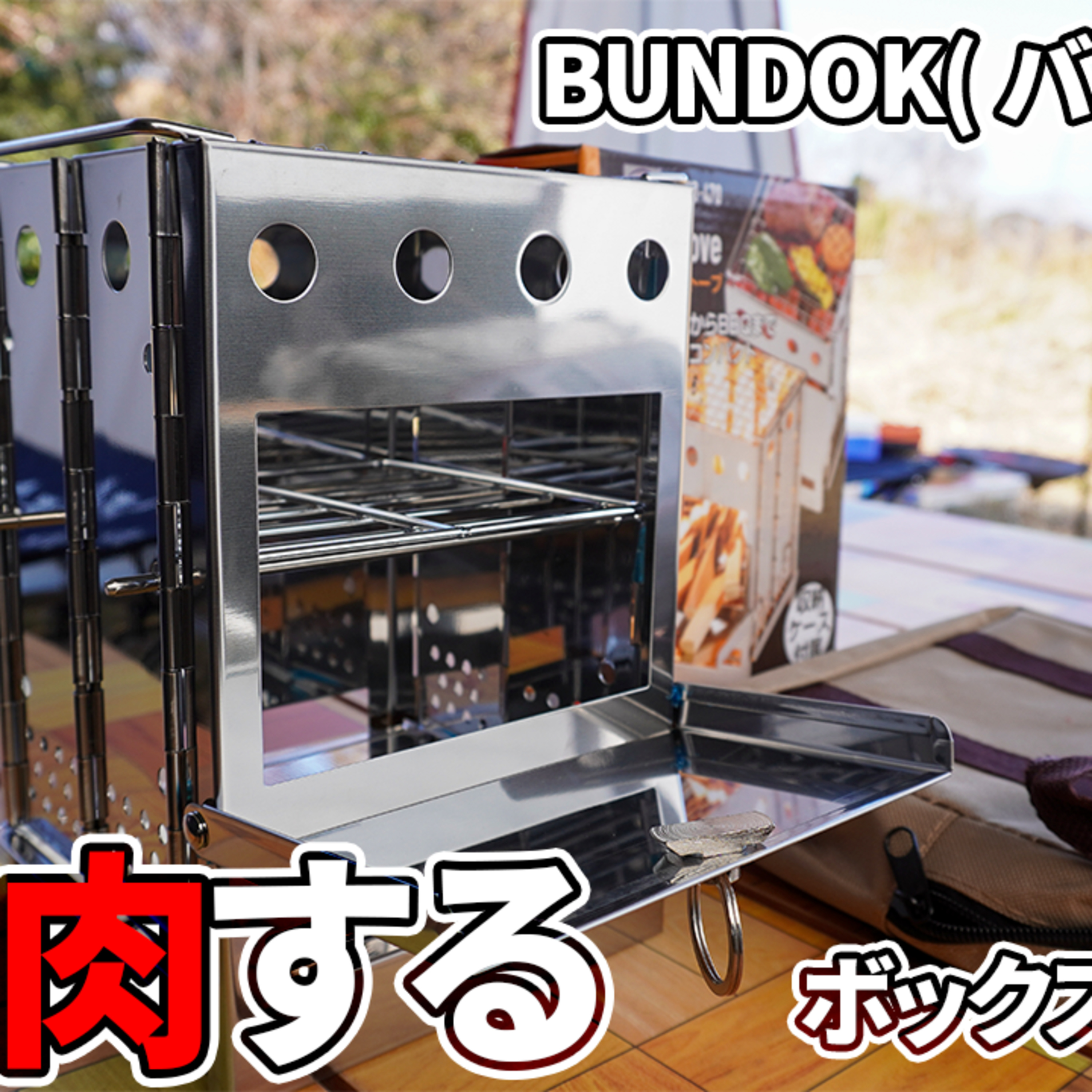 検索No:464【キャンプ】BUNDOK(バンドック) ボックス ストーブを開封し、焼き肉する