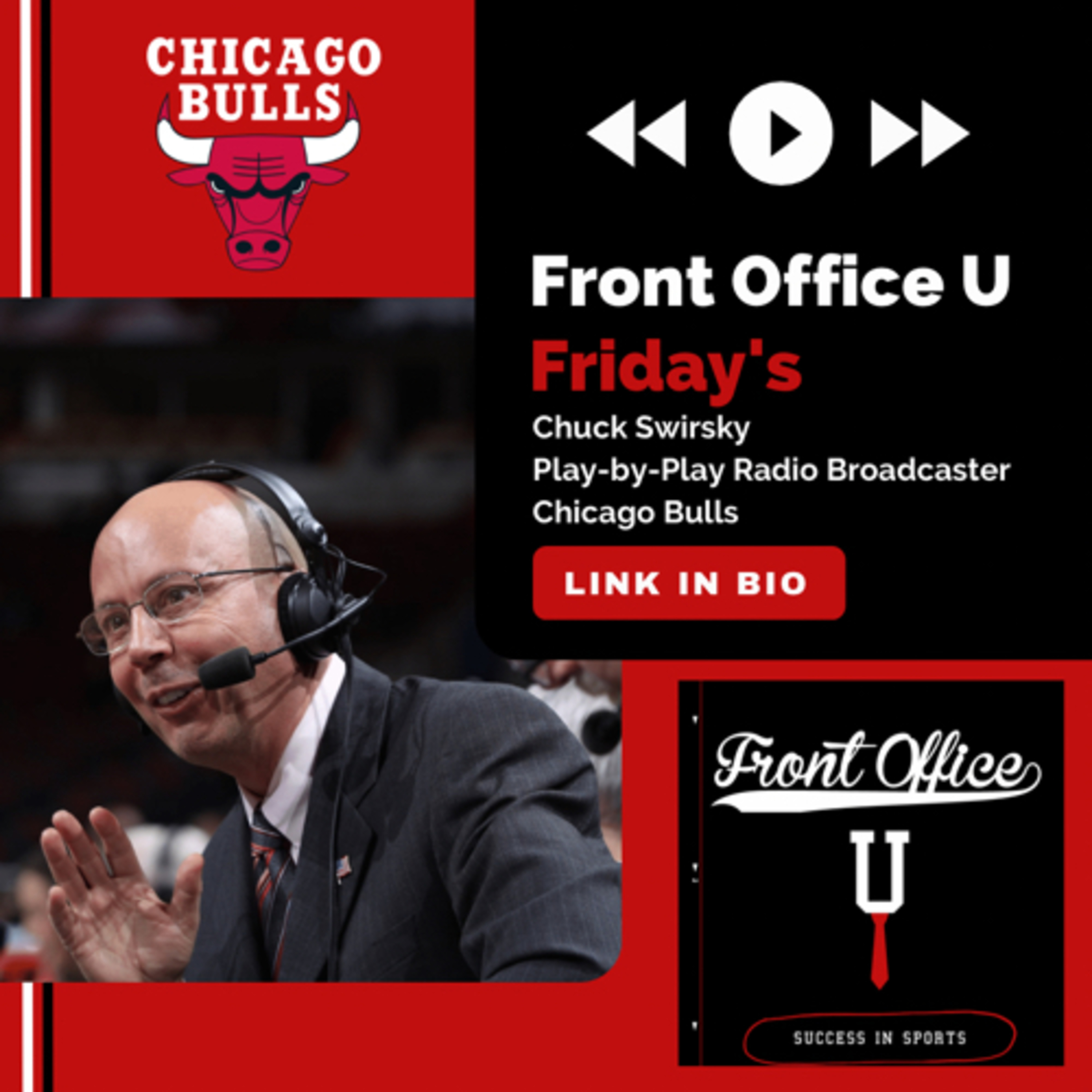 Chuck Swirsky is the radio Play-by-Play broadcaster for the Chicago Bulls of the NBA. Swirsky talks about his background in wanting to be a broadcaster since the age of five. Hosts Ryan Kearney and Nathan Escobedo talk with the voice of the Bulls about his advice for those interested in working in sports, his preparation for each game, and others who have influenced his career. You can reach out to Chuck directly at cswirsky@bulls.com to continue the conversation.
