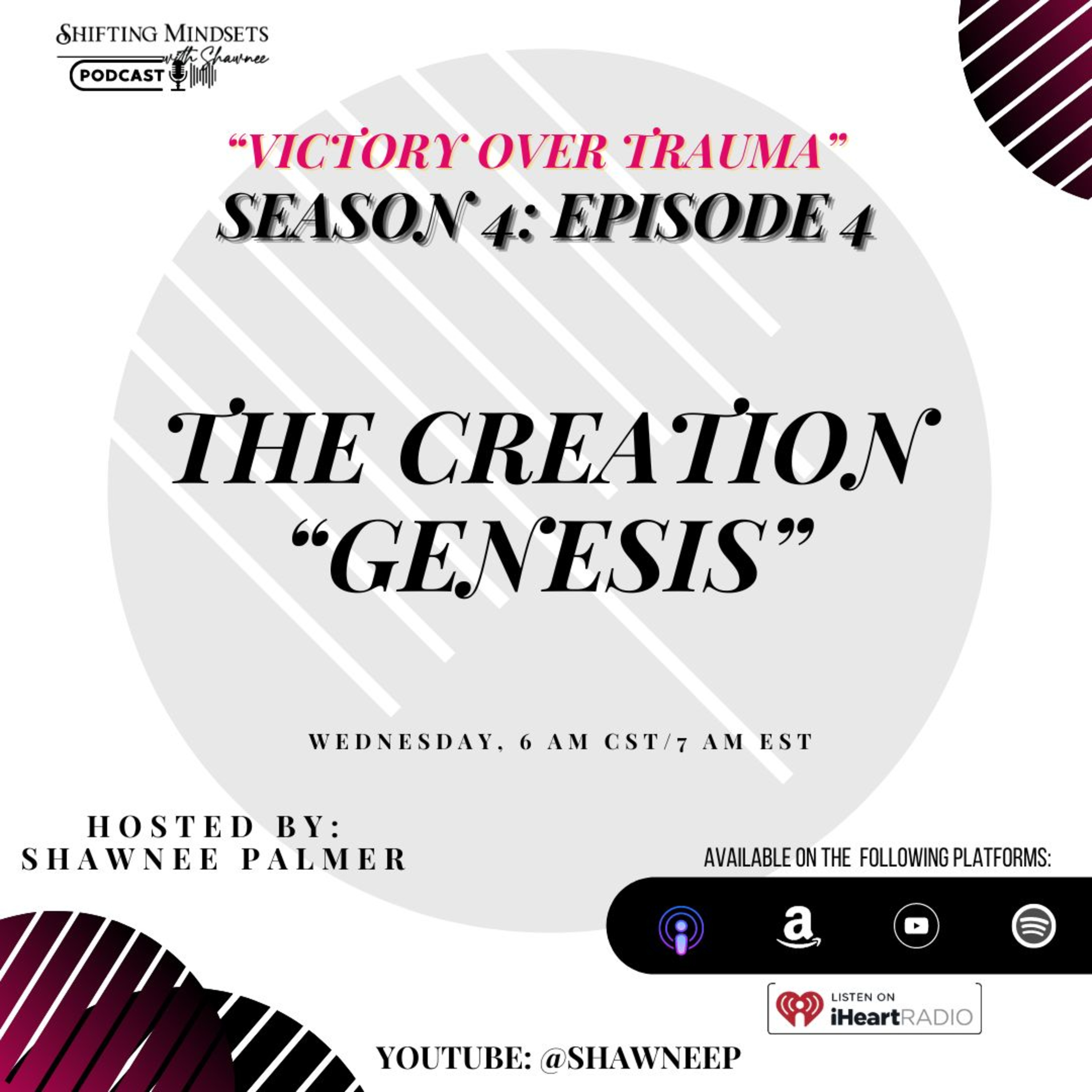 In this episode, we will reflect on God’s creation, YOU, and God’s instruction of you starting TODAY. God is calling many of you to create in this season. Create in the morning and the evening! Set the tone for each day that you walk into so that trauma patterns start to cease. Tune in to learn more about this!