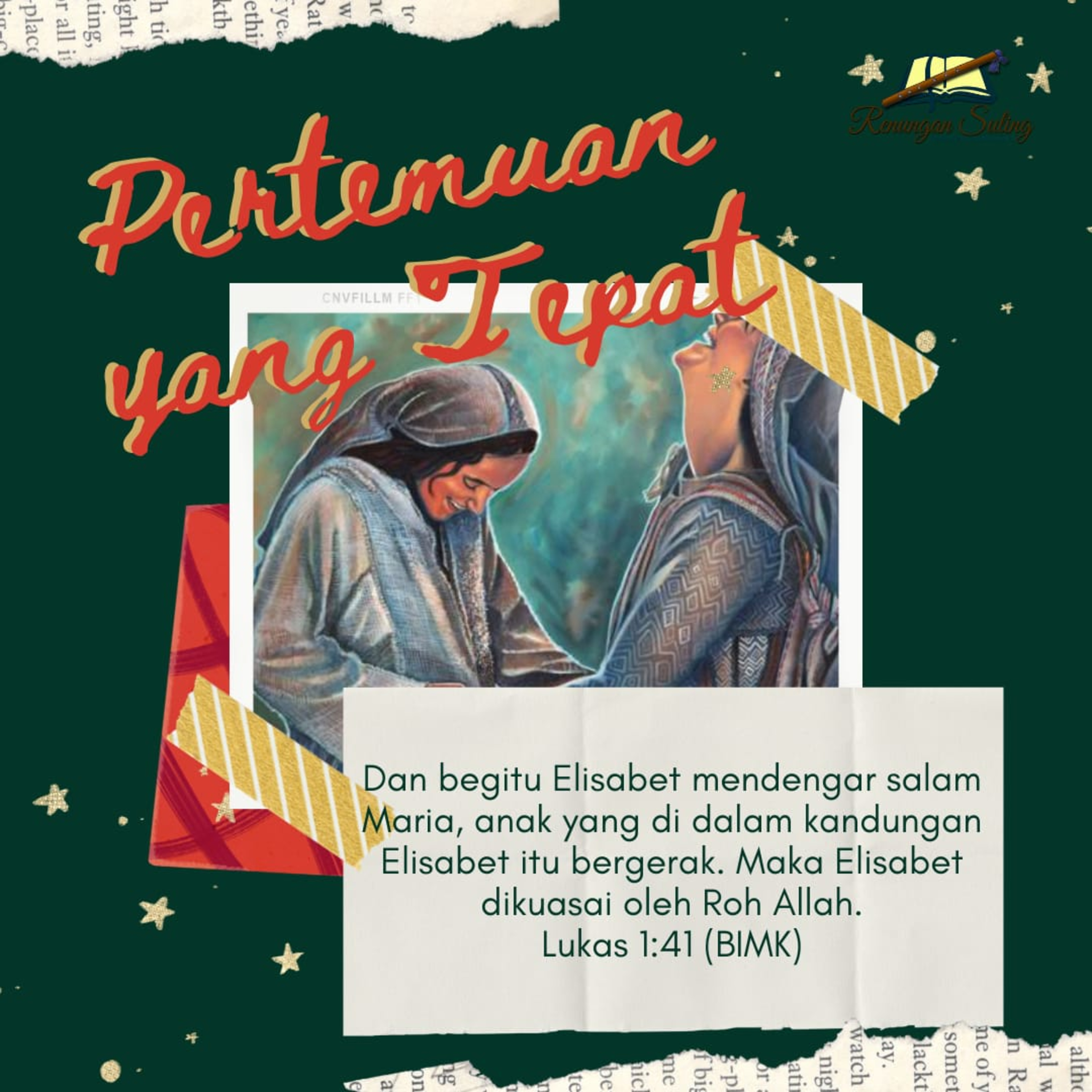 Dan begitu Elisabet mendengar salam Maria, anak yang di dalam kandungan Elisabet itu bergerak. Maka Elisabet dikuasai oleh Roh Allah. (Lukas 1:41)