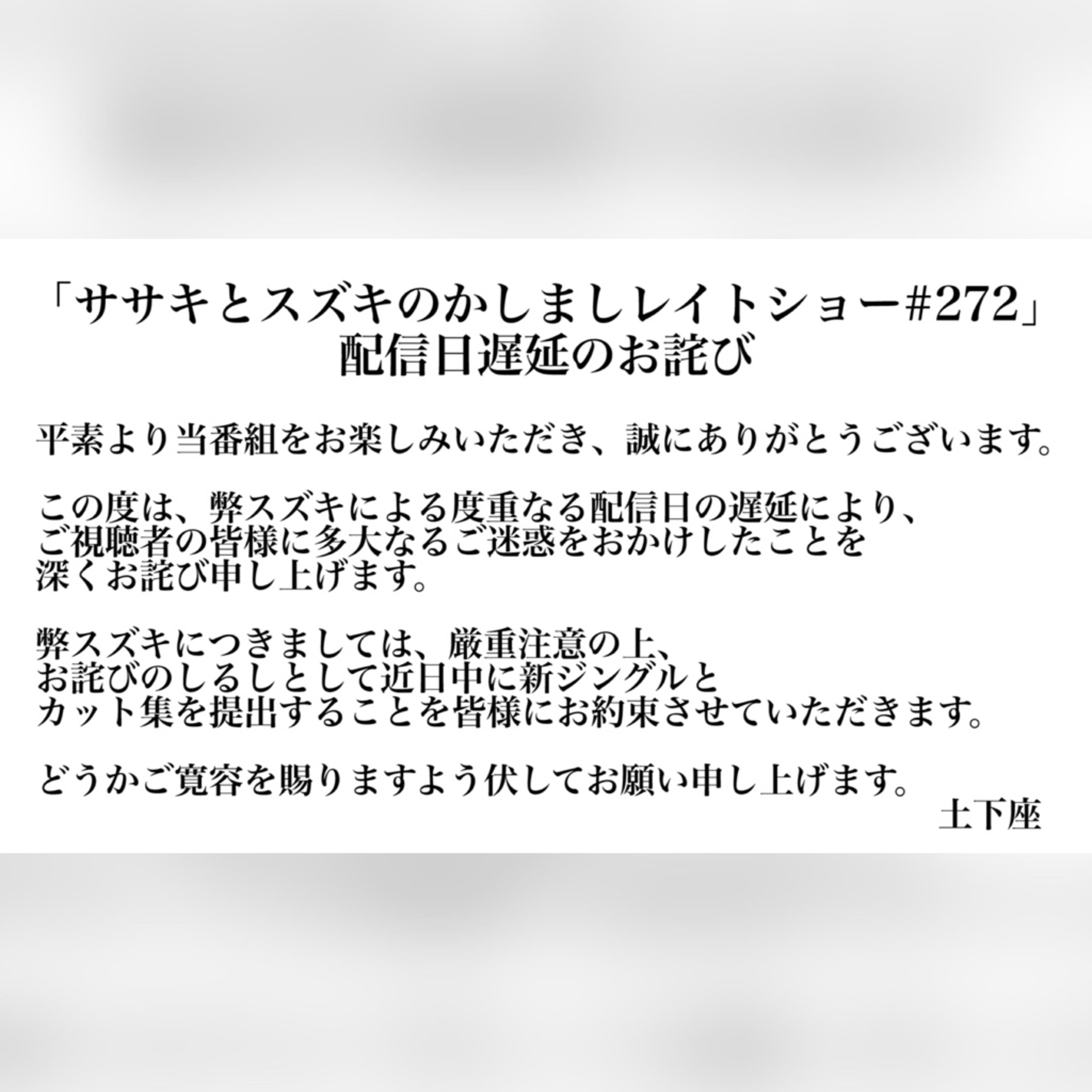 〜〜〜土下座謝罪文〜〜〜