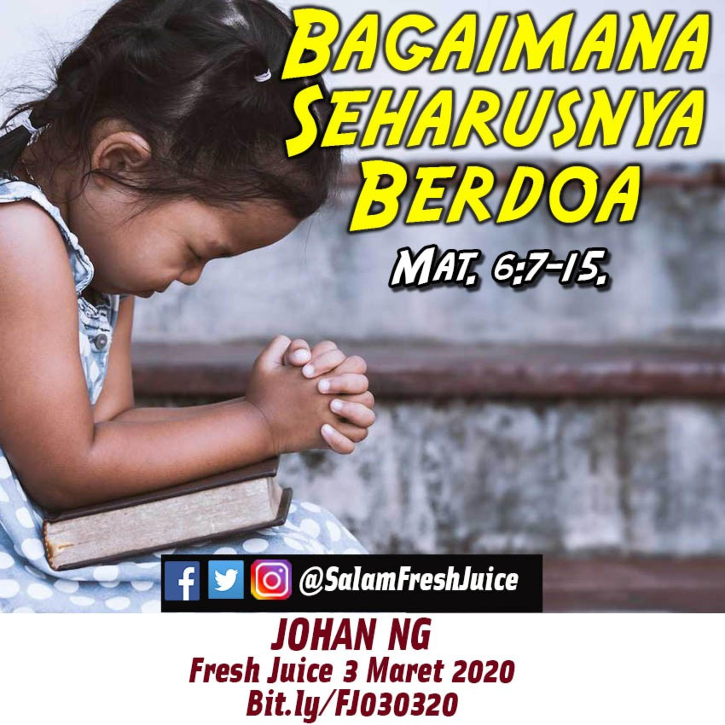 Fresh Juice 3 Maret 2020 Renungan Harian Audio Katolik Mat. 6:7-15. Tema : Bagaimana Seharusnya Berdoa Pembawa Renungan : Johan Ng Jakarta