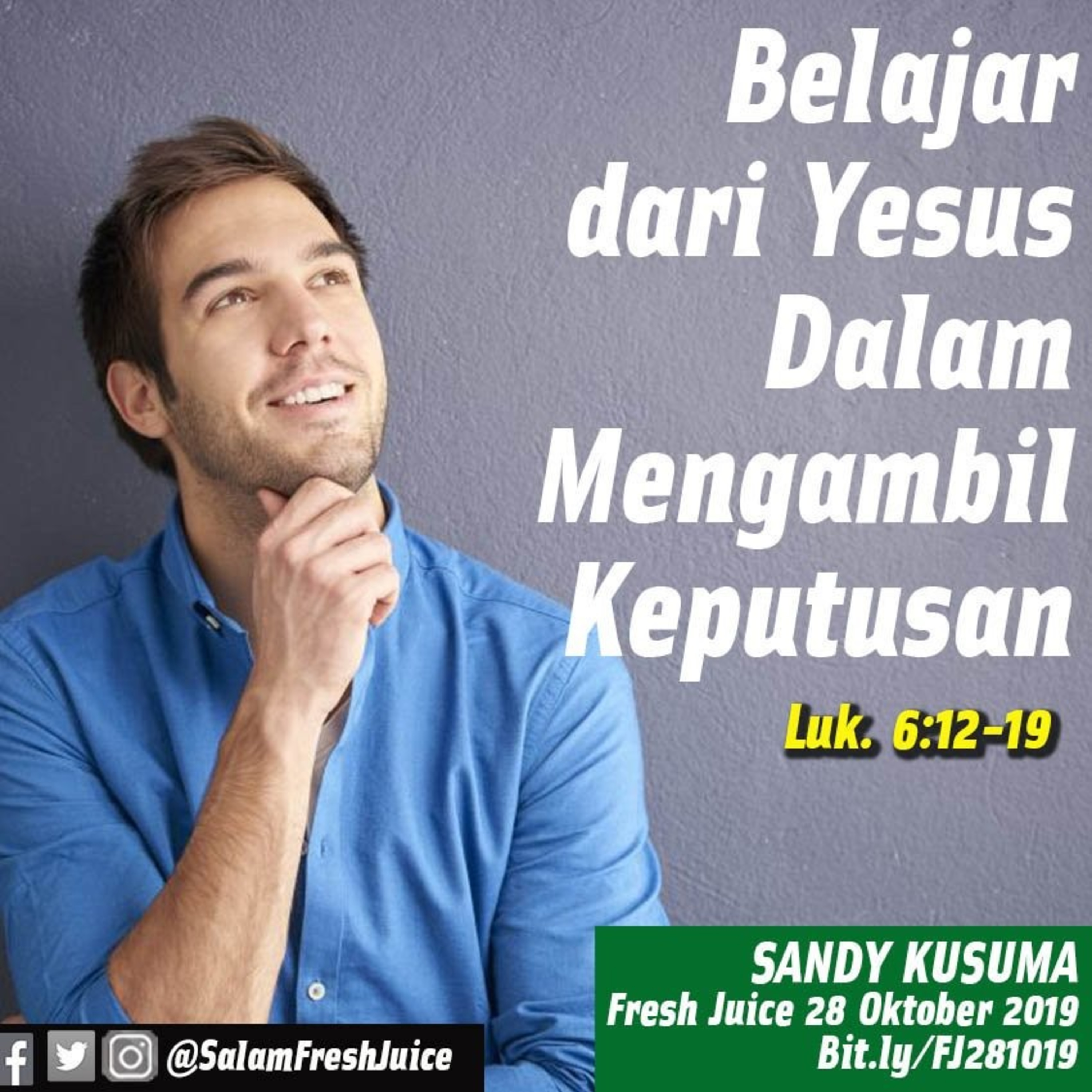 Fresh Juice 28 Oktober 2019 Renungan Harian Audio Katolik Luk. 6:12-19. Tema : Belajar dari Yesus Dalam Mengambil Keputusan Pembawa Renungan : Sandy Kusuma Jakarta