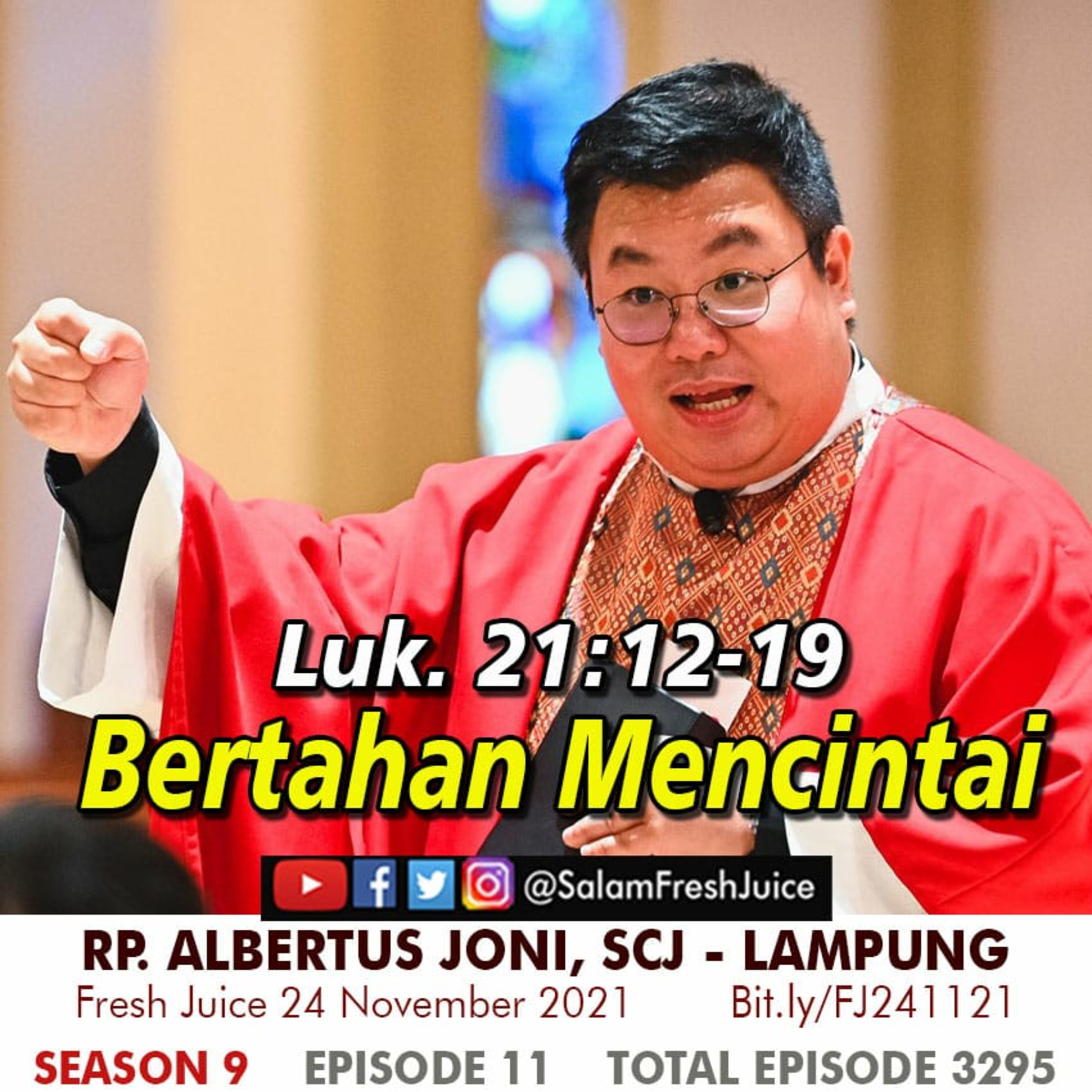Fresh Juice 24 November 2021 Renungan Harian Audio Katolik Luk.21 : 12-19 Tema : Bertahan Mencintai Pembawa Renungan : RP. Albertus Joni,SCJ - Lampung