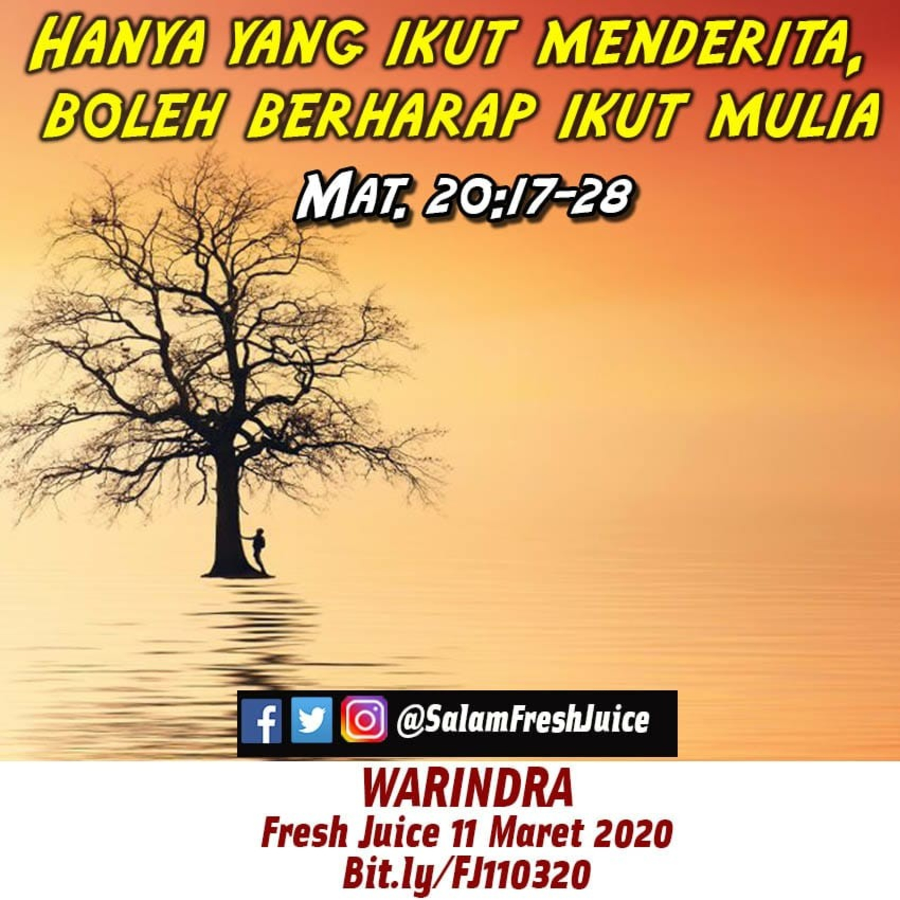 Mat. 20:17-28. Tema : Hanya yang ikut menderita, boleh berharap ikut mulia Pembawa Renungan : Warindra Yogyakarta