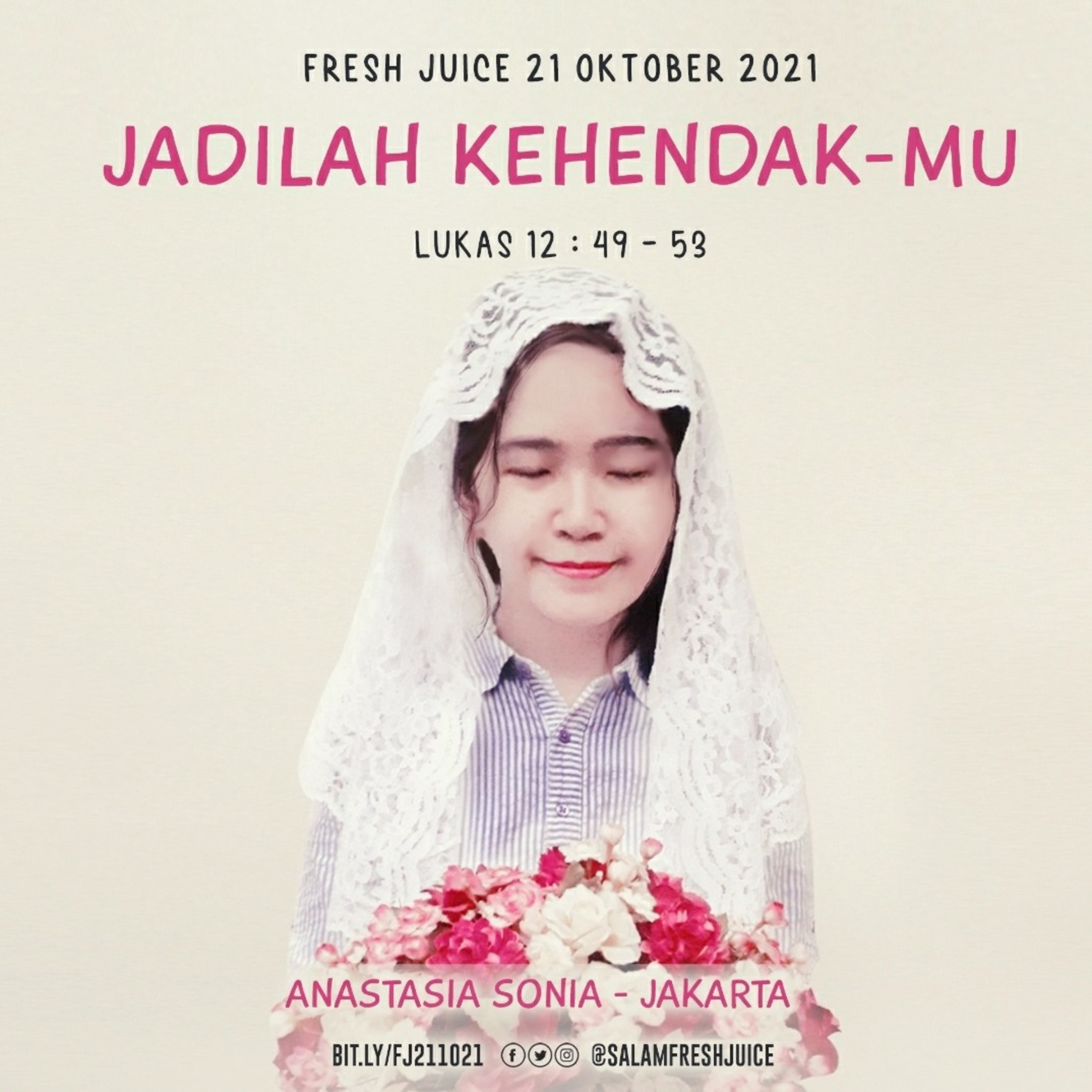 Fresh Juice 21 Oktober 2021 Renungan Harian Audio Katolik Lukas 12 : 49 - 53 Tema : Jadilah Kehendak - Mu Pembawa Renungan : Anastasia Sonia - Jakarta