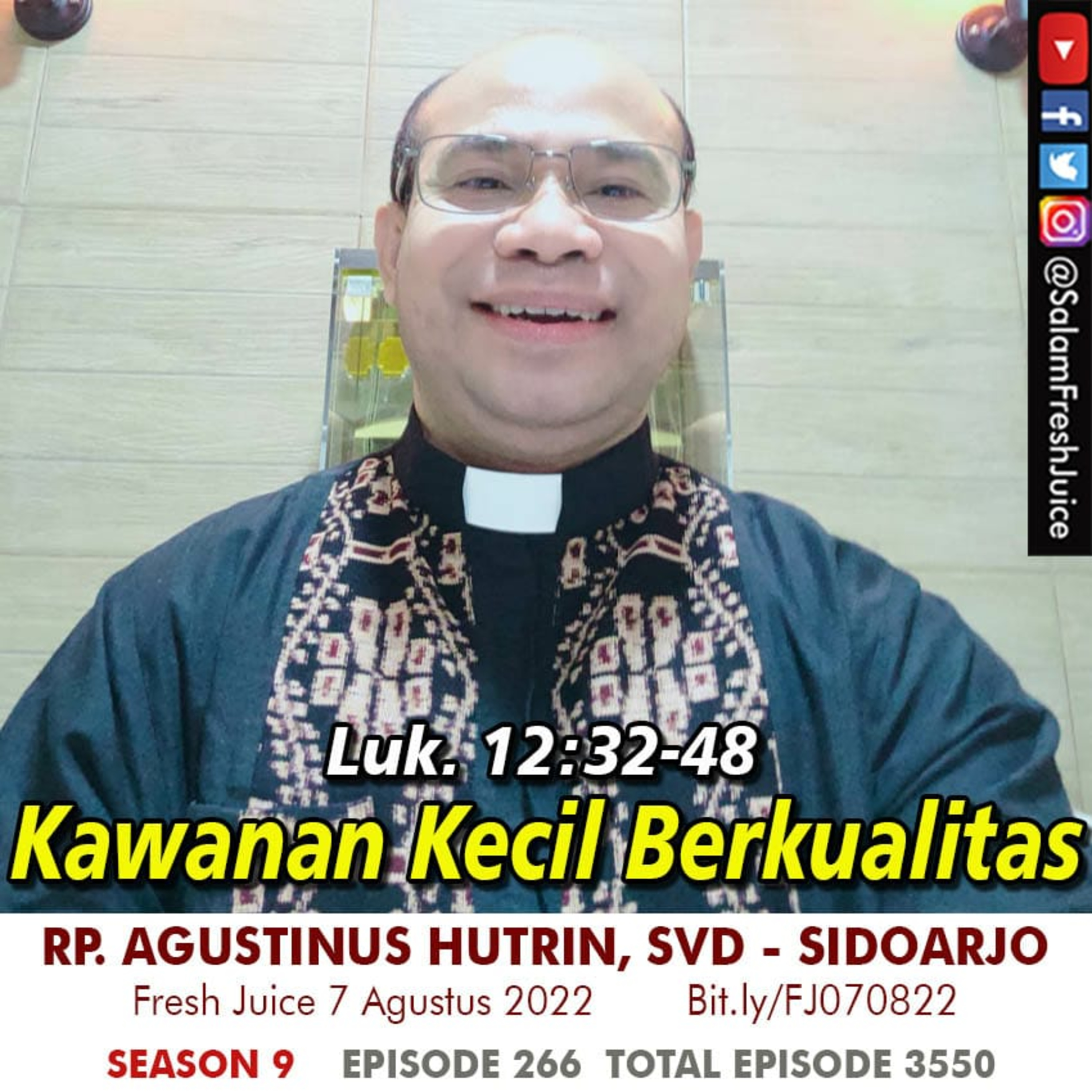 Fresh Juice 7 Agustus 2022 Renungan Harian Audio Katolik Luk. 12 : 32- 48 Tema : Kawanan Kecil Berkualitas Pembawa Renungan : RP. Agustinus Hutrin, SVD - Sidoarjo