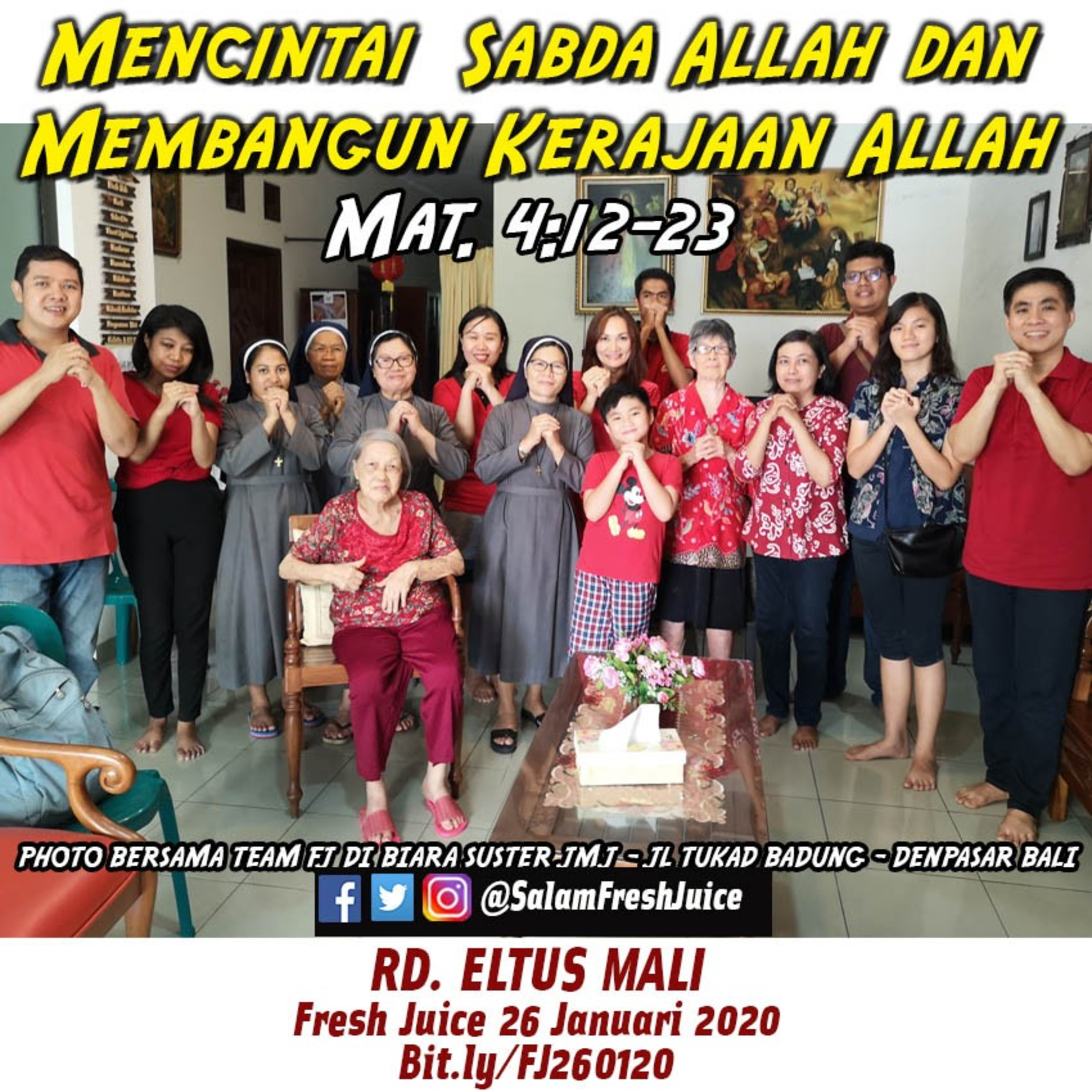 Fresh Juice 26 Januari 2020 Renungan Harian Audio KatolikHARI MINGGU SABDA ALLAH Mat. 4:12-23 Tema : Mencintai Sabda Allah dan Membangun Kerajaan Allah Pembawa Renungan : RD. Eltus MaliMakassar