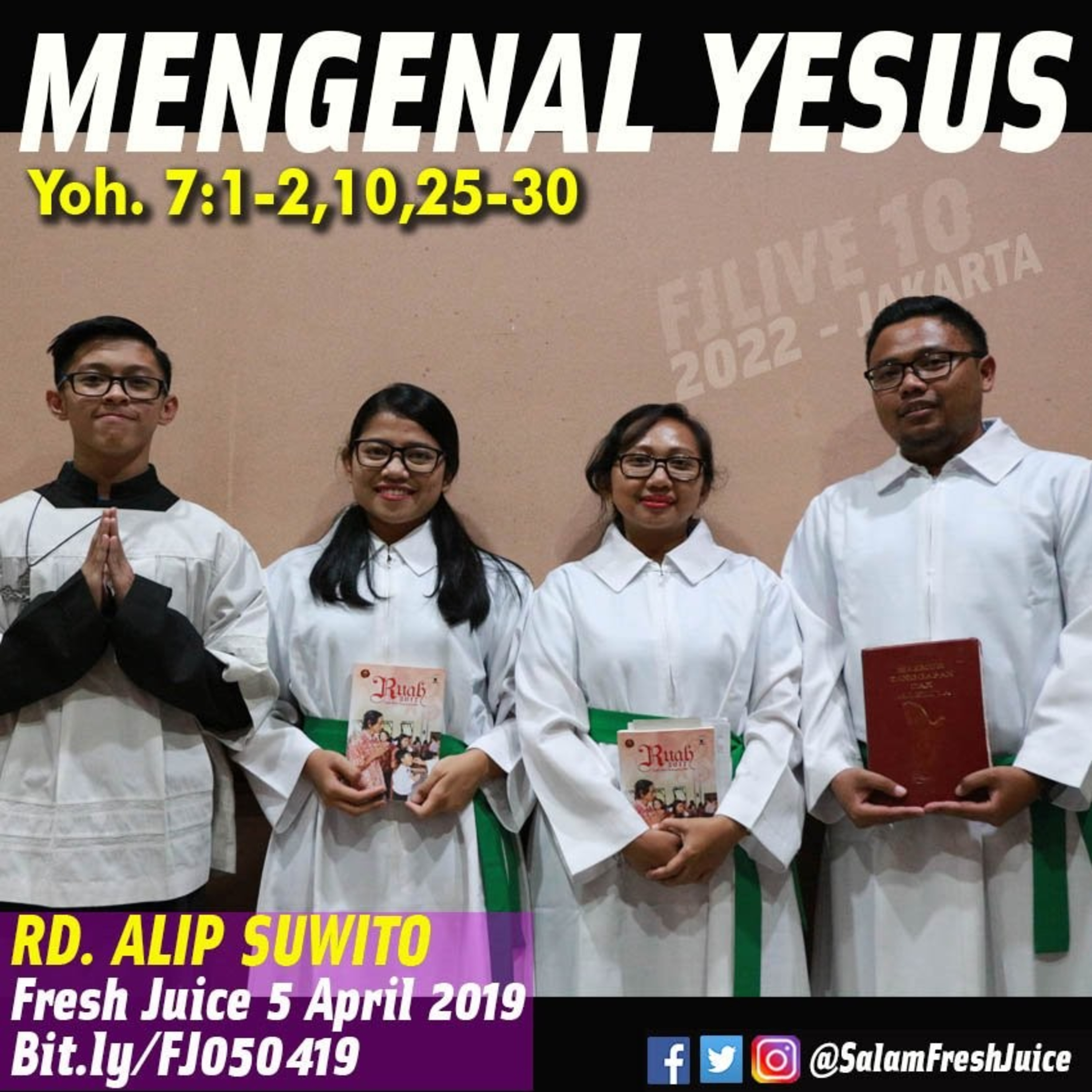 Fresh Juice 5 April 2019 Renungan Harian Audio Katolik Yoh. 7:1-2,10,25-30. Tema : Mengenal Yesus Pembawa Renungan : RD. Alip Suwito Yogyakarta