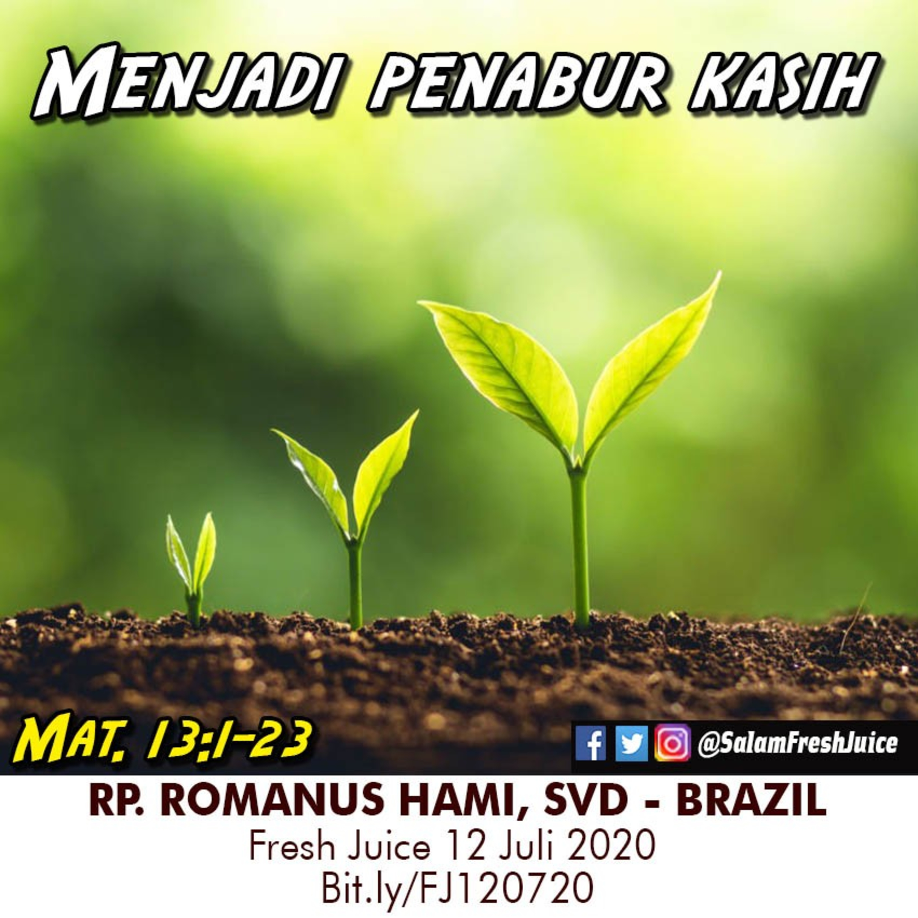 Fresh Juice 12 Juli 2020 Renungan Harian Audio Katolik Mat. 13:1-23 Tema : Menjadi Penabur Kasih Pembawa Renungan : RP. Romanus Hami, SVD Brazil
