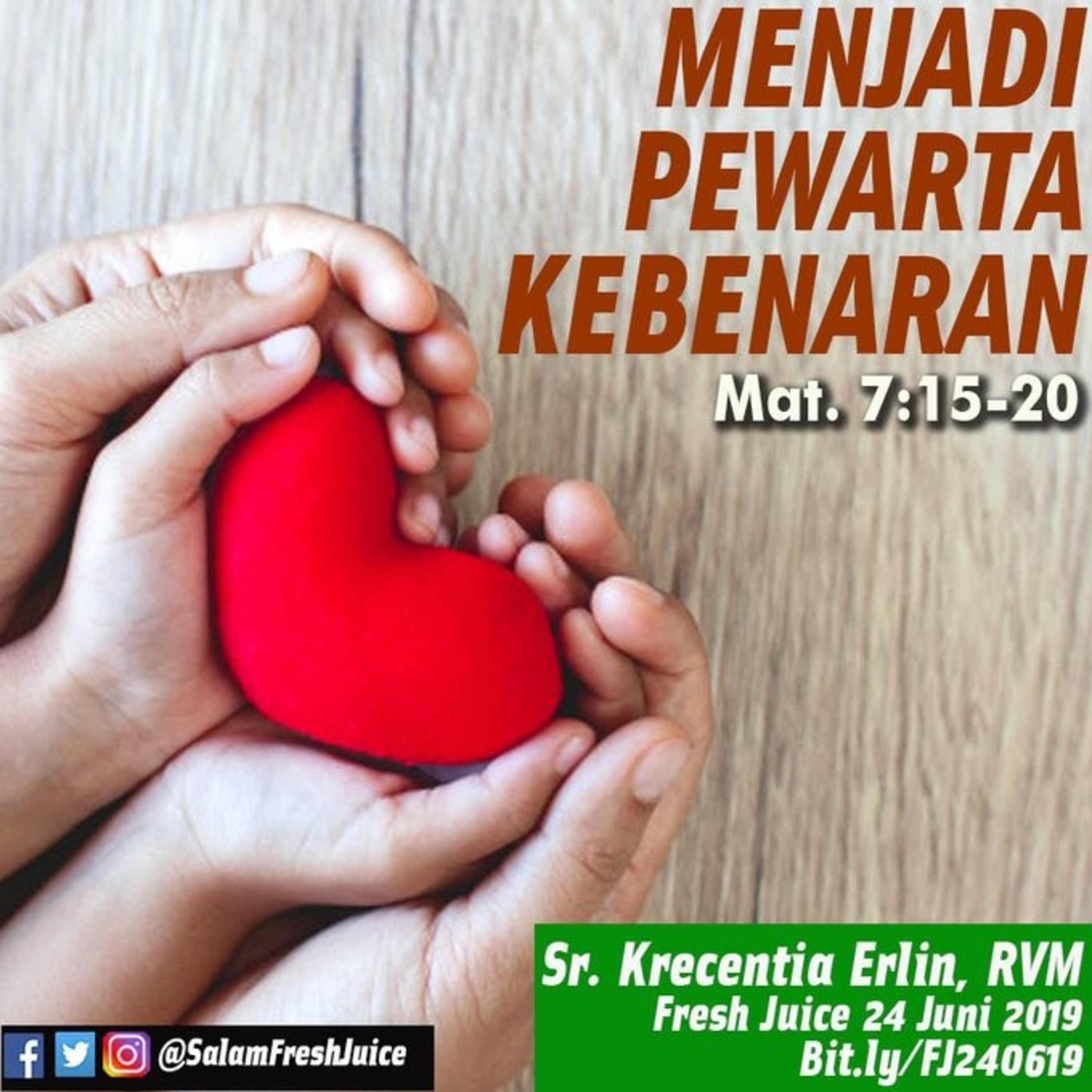 Fresh Juice 26 Juni 2019 Renungan Harian Audio Katolik Mat. 7:15-20. Tema : Menjadi Pewarta Kebenaran Pembawa Renungan : Sr. Krecentia Erlin, RVM Filipina