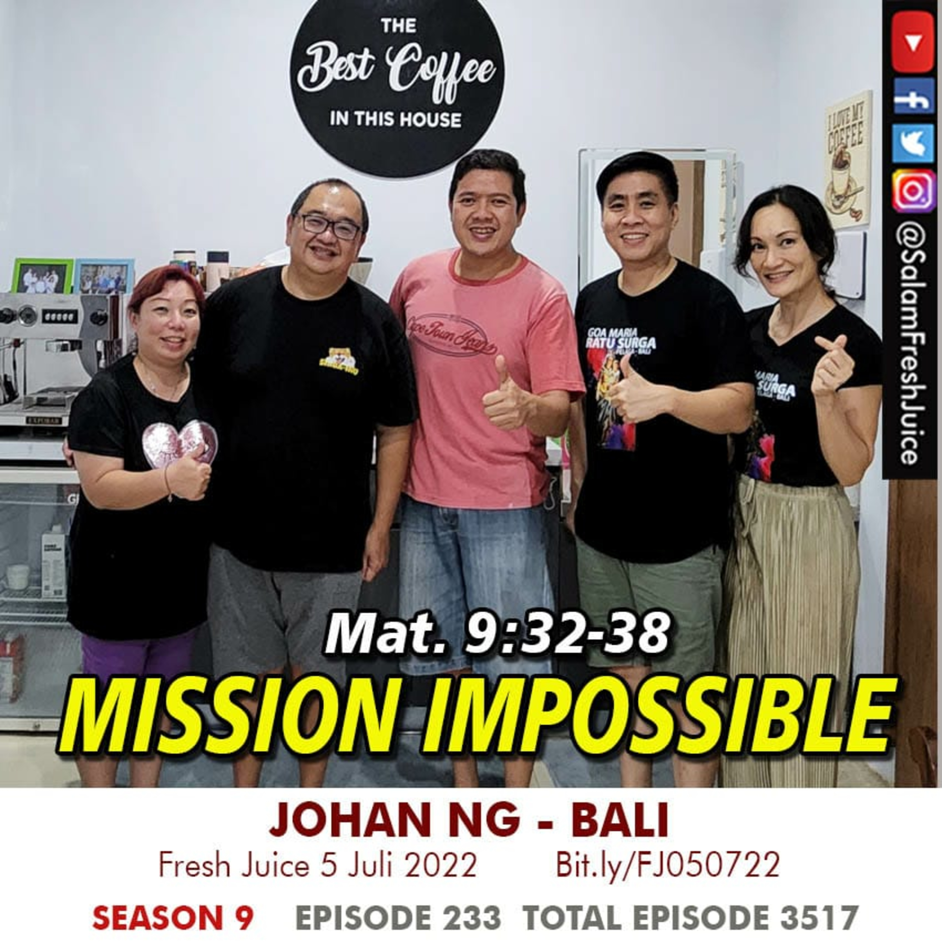 Fresh Juice 5 Juli 2022 Renungan Harian Audio Katolik Mat. 9 : 32 - 38 Tema : Mission Impossible Pembawa Renungan : Johan Ng - Bali